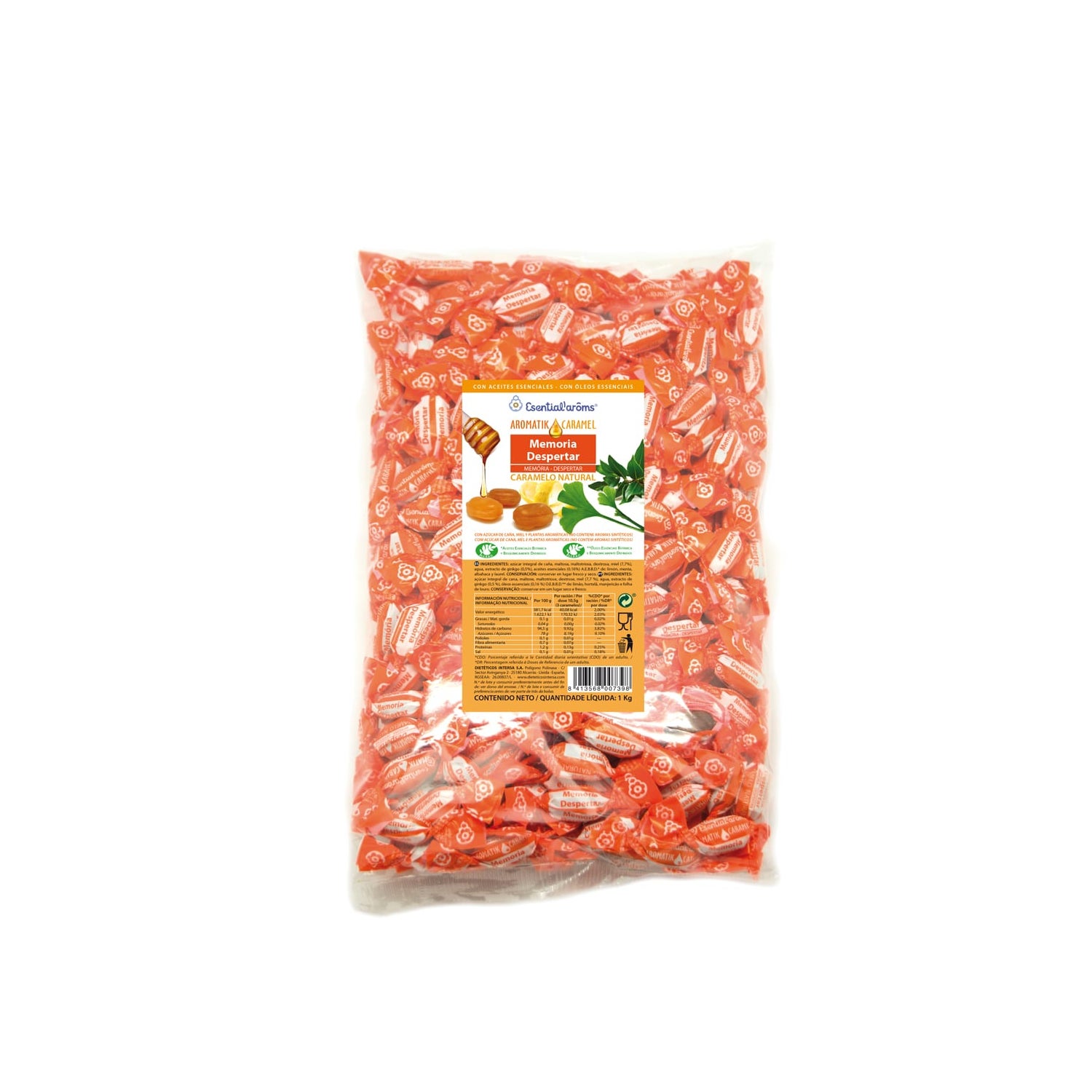 Esential'Arôms Aromatik Caramel Memória Despertar 1kg é um produto natural projetado para potencializar a concentração e a memória. Esses caramelos ecológicos são formulados para estimular a agilidade mental no trabalho, nos estudos ou em qualquer situação que exija atenção adicional.
