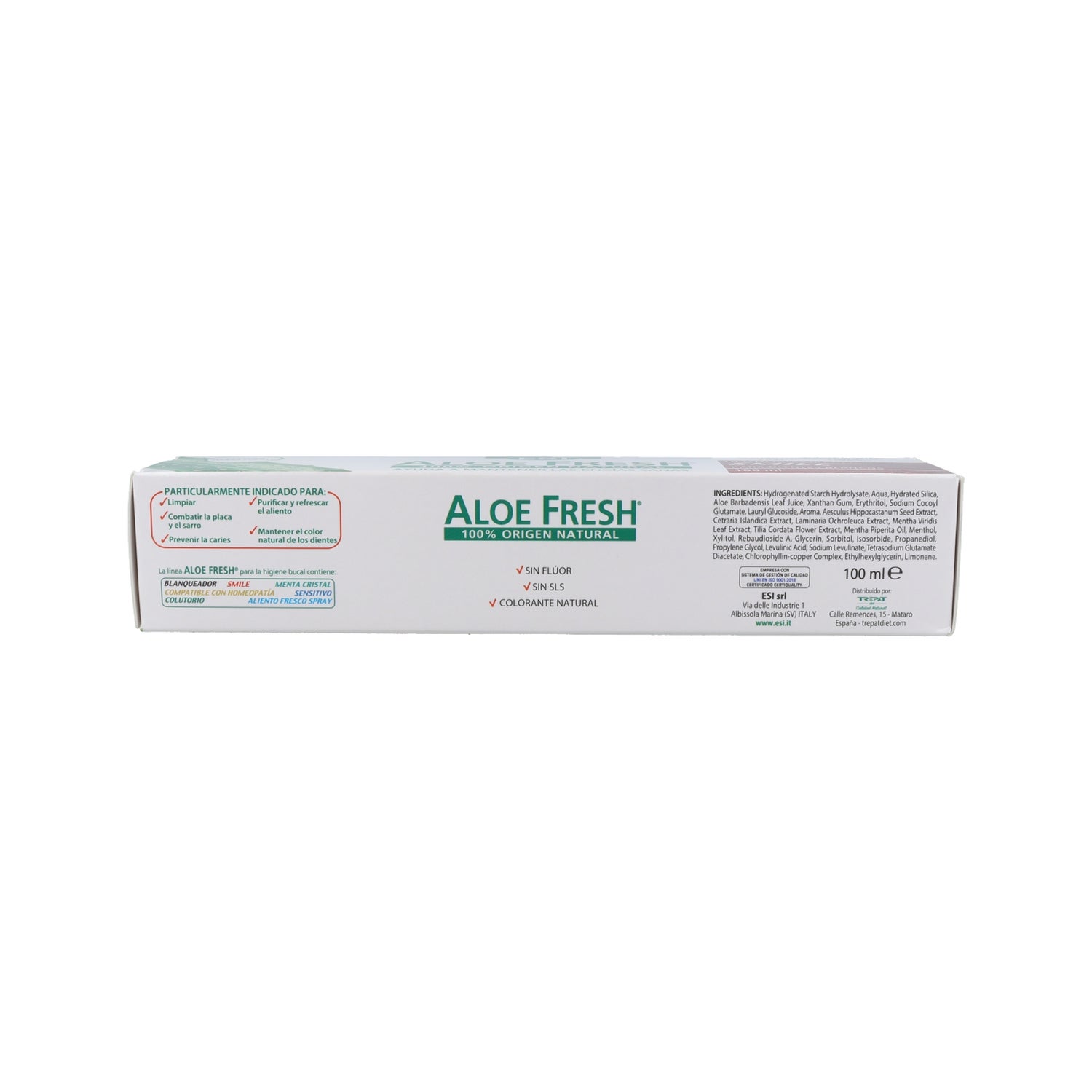 A linha de creme dental Aloe Fresh Smile da ESI contém ingredientes ativos 100% naturais que ajudam a manter as gengivas saudáveis, limpando os dentes mesmo nos cantos mais inacessíveis. Além disso, graças às suas propriedades branqueadoras, elimina a formação de incrustações e deixa o esmalte completamente branco. Com Aloe Fresh Smile terá dentes brancos e uma agradável sensação de frescura!