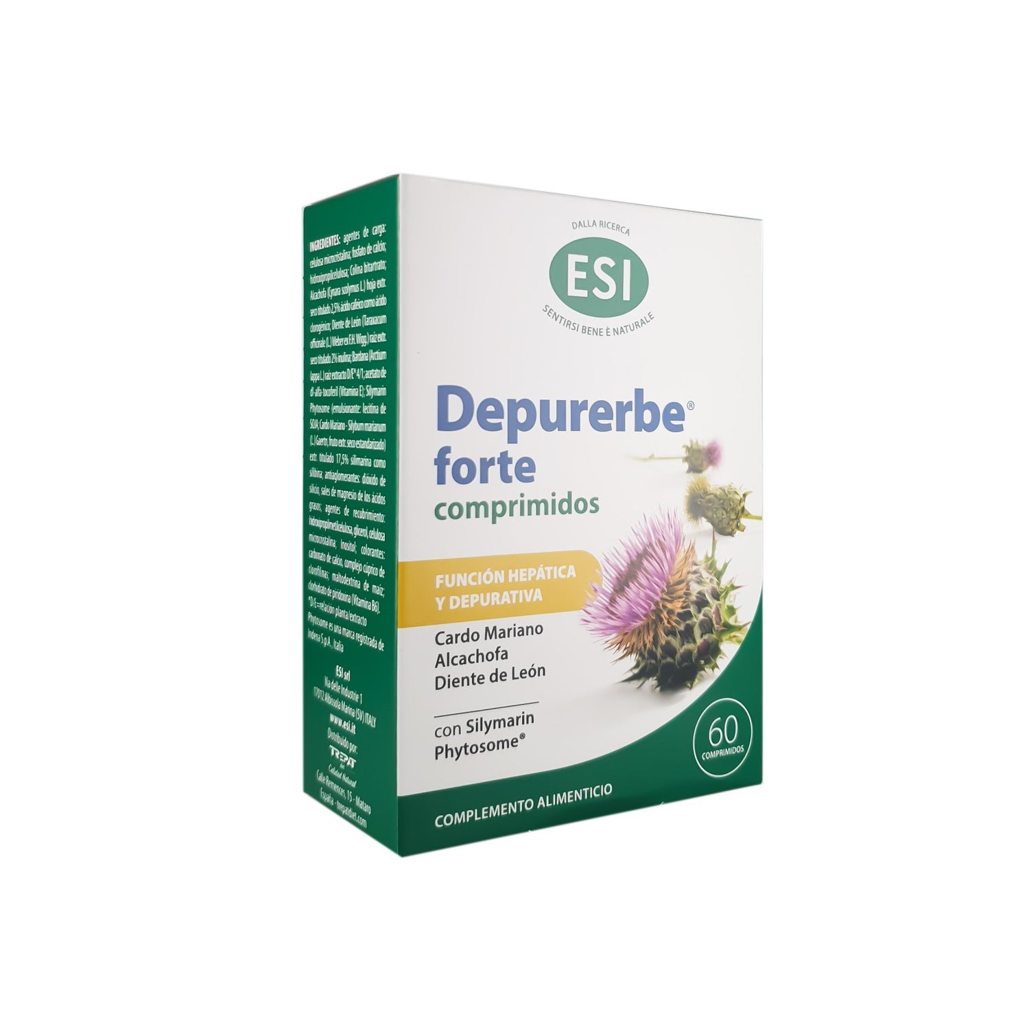 ESI Depurerbe Forte 60 Comprimidos é um complemento alimentar em forma de comprimidos projetado para complementar a tua dieta diária. Este produto é elaborado a partir de extratos vegetais e nutrientes específicos.