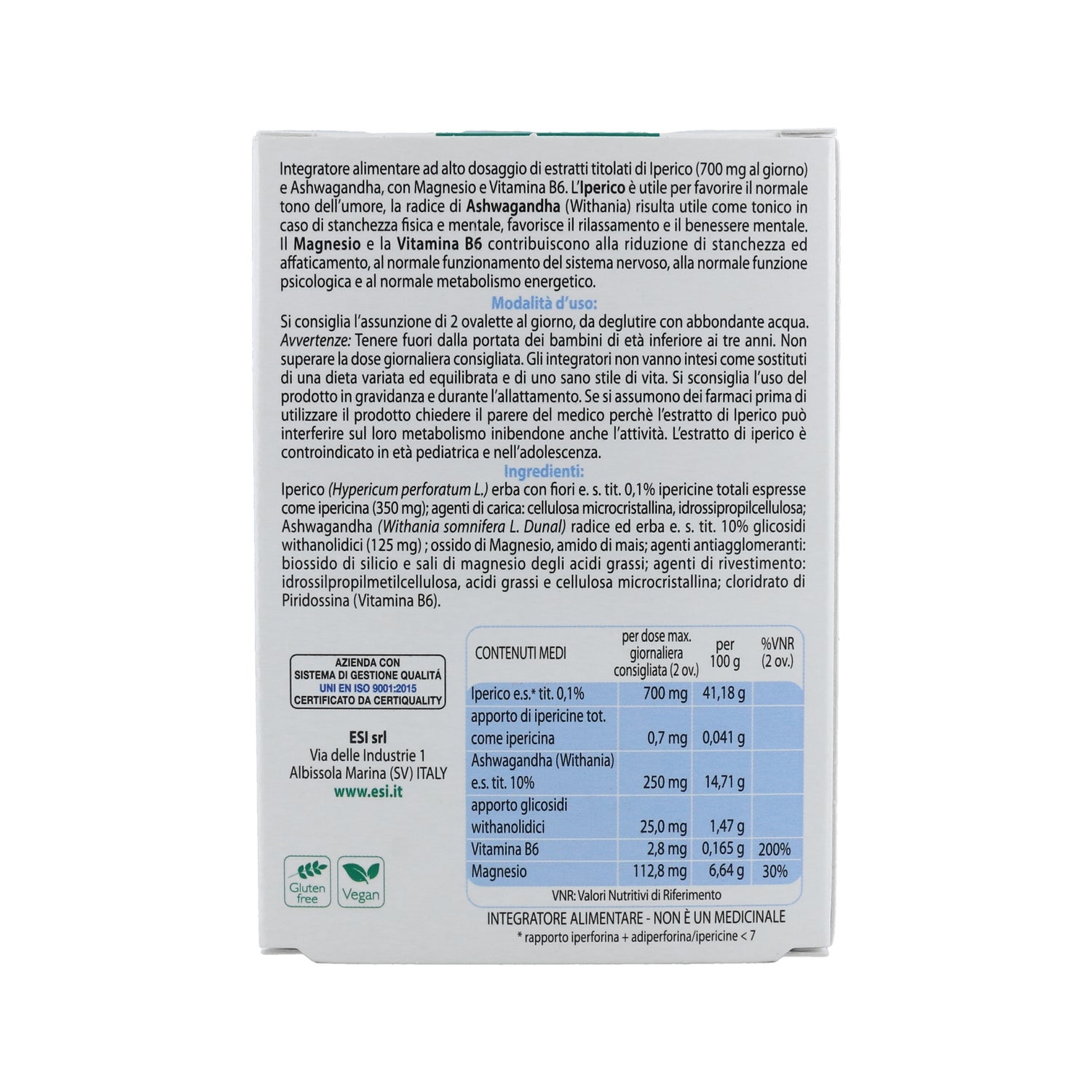 Suplemento alimentar apresentado sob a forma de cápsulas, que ajuda a combater o stress físico e mental. Promove o relaxamento e o bem-estar de uma forma natural. É constituído por ingredientes activos: hipericum, que ajuda a manter o equilíbrio emocional, promovendo o humor normal; ashwagandha, que traz relaxamento e bem-estar à mente; magnésio e vitamina B6, que reduzem o cansaço e a fadiga. Adequado para melhorar os humores. Adequado para pessoas com idade igual ou superior a 18 anos. Adequado para veganos e celíacos. Não tomar durante a gravidez e lactação.