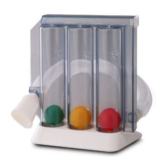 Este artigo da Cami é um dispositivo especialmente concebido para o exercício e reforço do sistema respiratório. Ajuda a trabalhar a respiração através de exalações e aspirações fortes, sendo uma ferramenta eficaz de reabilitação pulmonar, fácil de usar e com resultados rápidos. É recomendado para pessoas que sofrem de doença pulmonar obstrutiva crónica ou DPOC. Também ajuda a aliviar os sintomas de pacientes com doenças respiratórias graves, dispneia, nervosismo ou stress