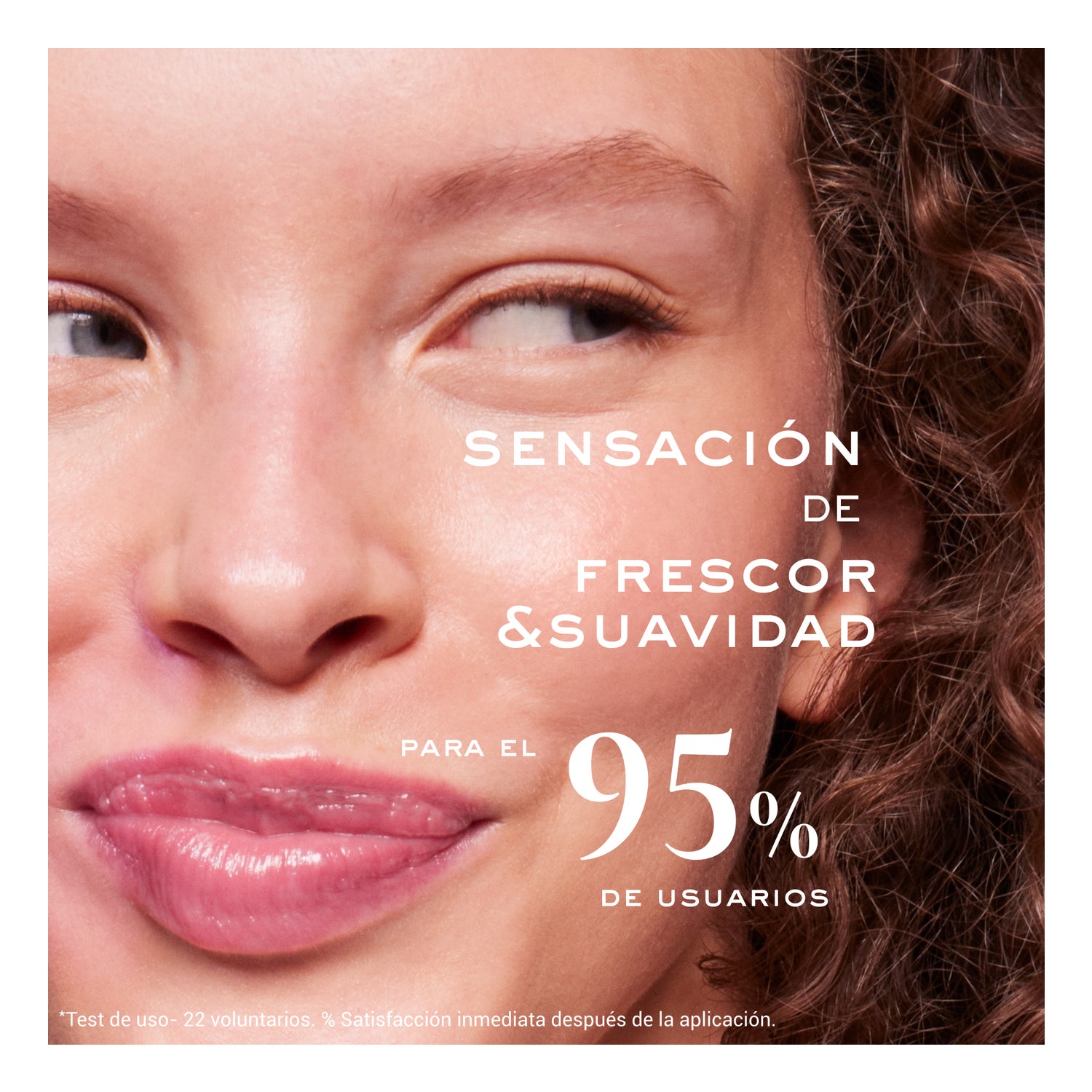 Fórmula vegana à base de 95 % de ingredientes de origem natural como extrato de rosa que é hidratante e calmante, contribuindo para limpar e reconfortar a pele.
