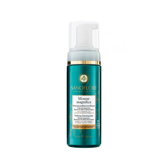 Sanoflore Mousse Magnifica Mousse de Limpeza Purificante 150ml é uma espuma de limpeza com certificação biológica, com uma textura arejada e tensioactivos suaves de origem 100% natural. A sua fórmula associa o hidrolato de hortelã-pimenta biológico e o óleo essencial da região de Vercors, com propriedades anti-inflamatórias, anti-sépticas e tonificantes da pele, a um complexo patenteado de 9 óleos essenciais biológicos, cujo poder purificante é comparável ao do ácido glicólico*.