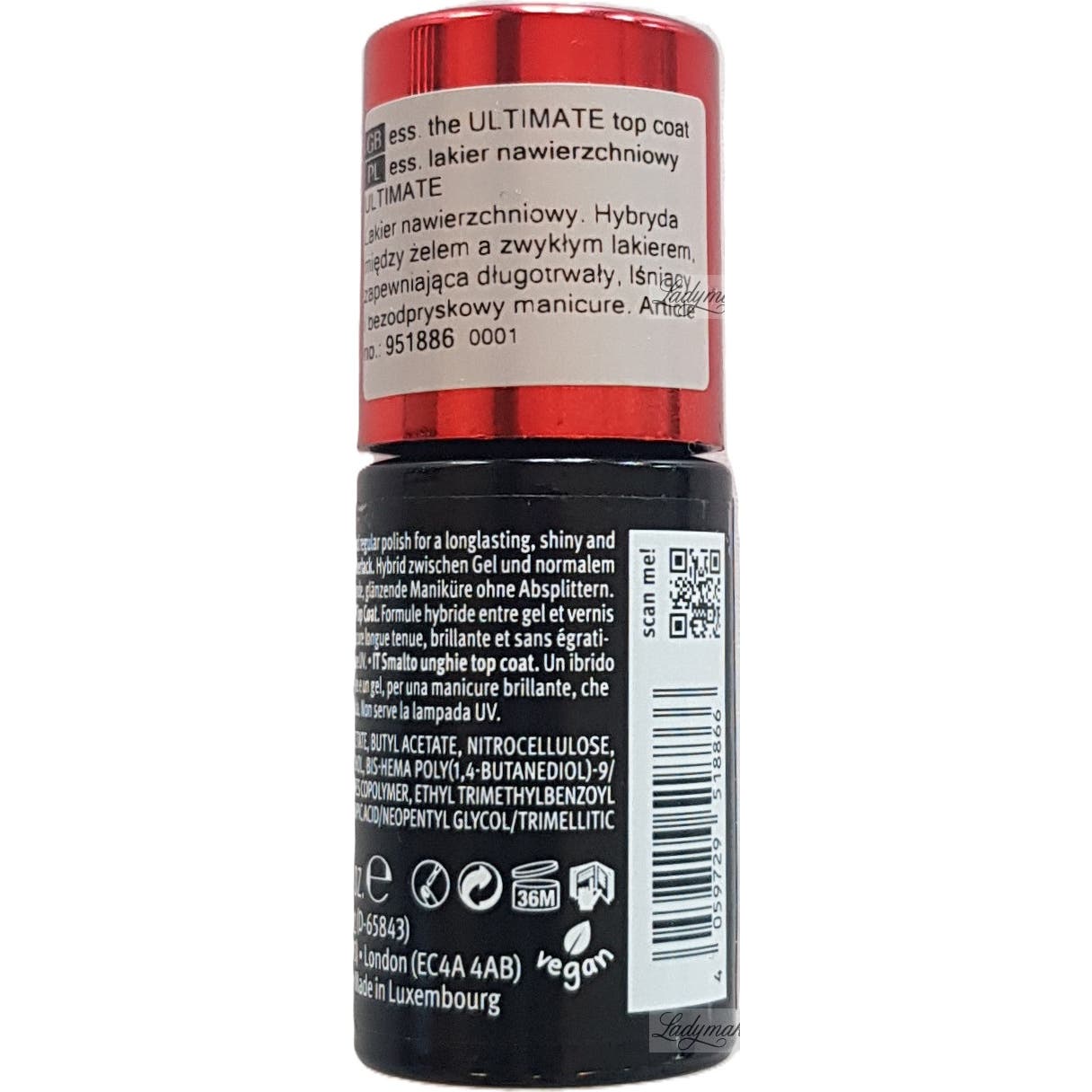 Essence Top Coat The Ultimate Gel Híbrido 8ml é a solução perfeita para realçar a aparência das unhas. Este esmalte de gel híbrido proporciona um brilho deslumbrante que perdura durante vários dias.