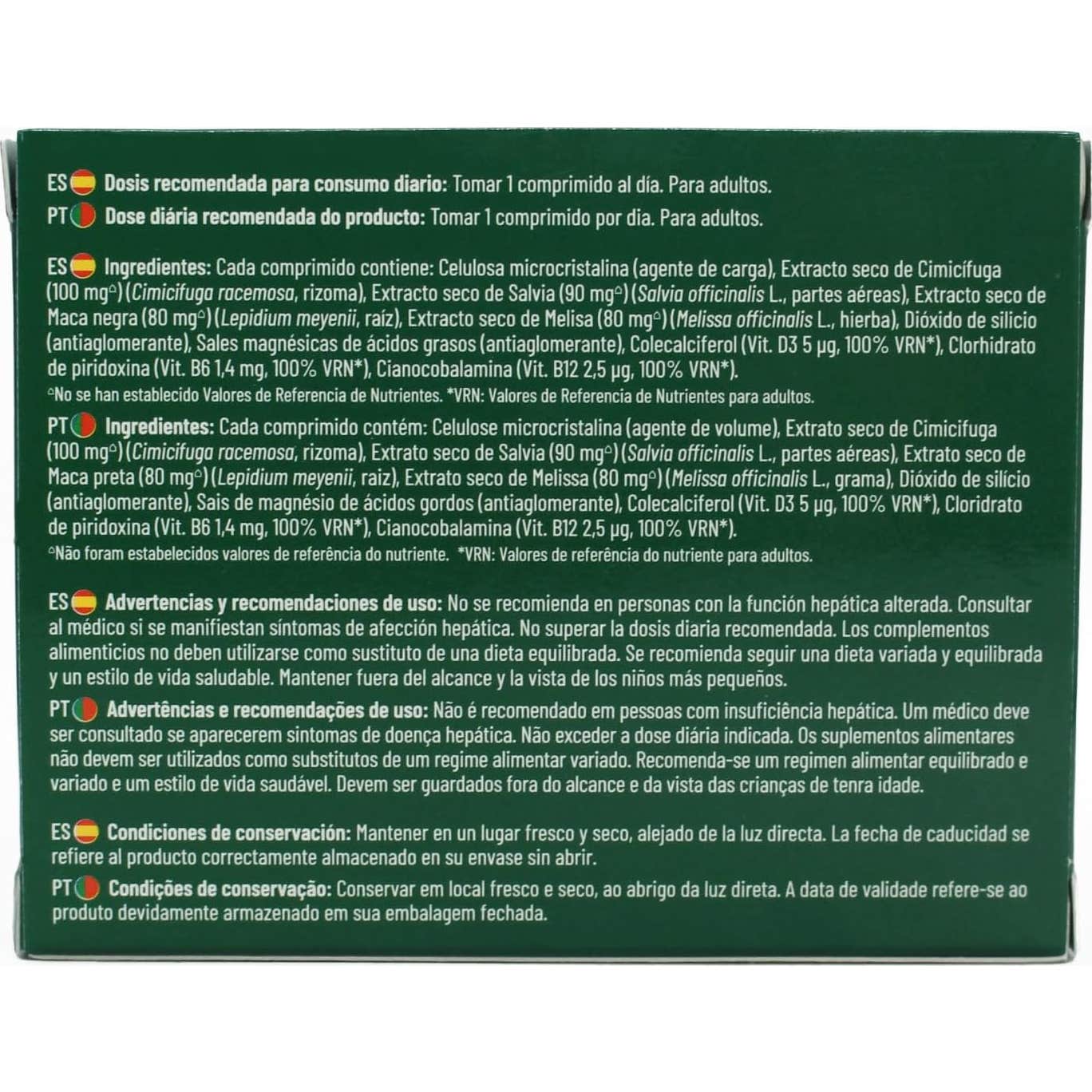 - 100 mg de extrato seco de cimicífuga
