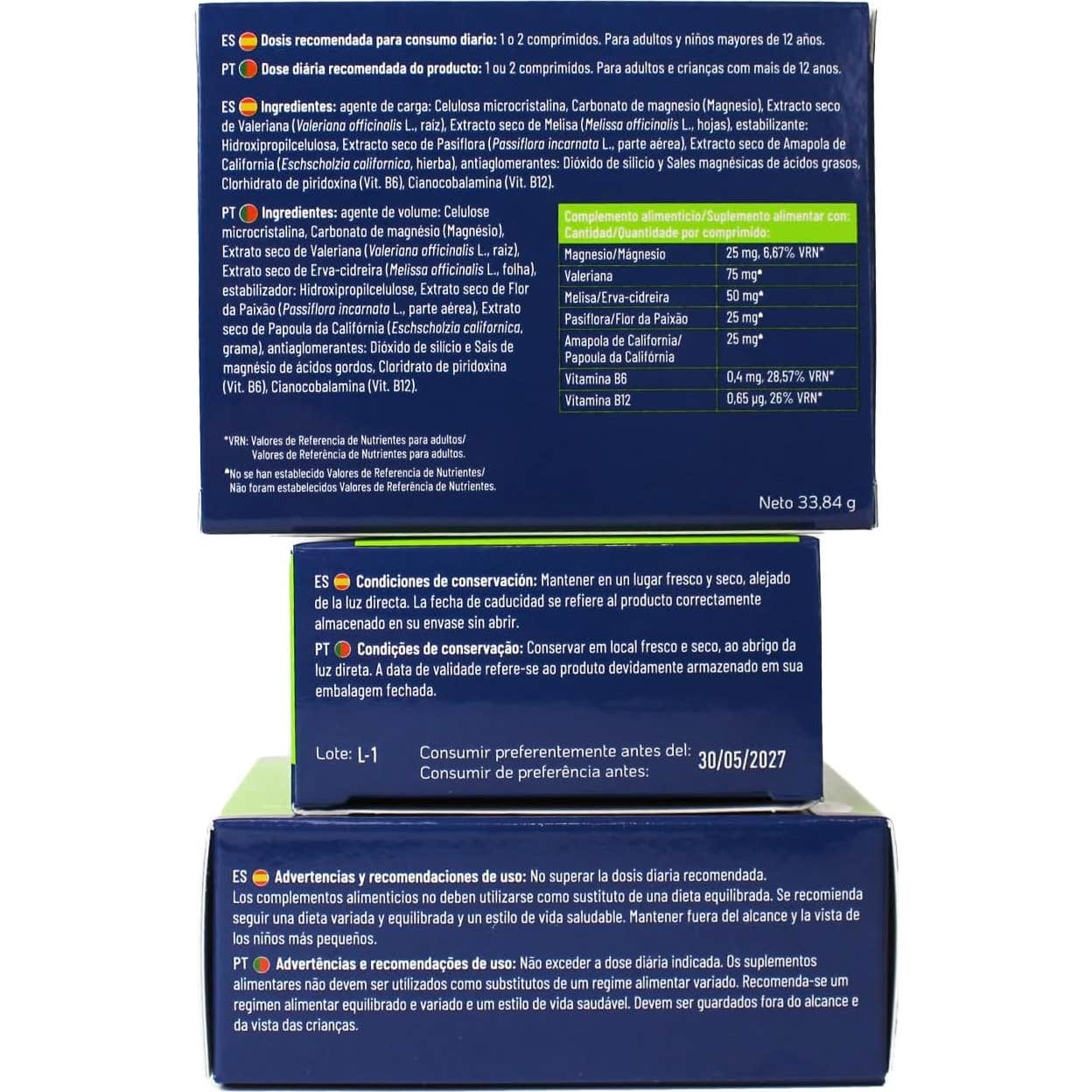 Cada comprimido também aporta magnésio e vitaminas B6 e B12, que são essenciais para o correto funcionamento do sistema nervoso. Essas vitaminas ajudam a diminuir o cansaço e a fadiga, contribuindo assim para um estado de ânimo mais equilibrado.