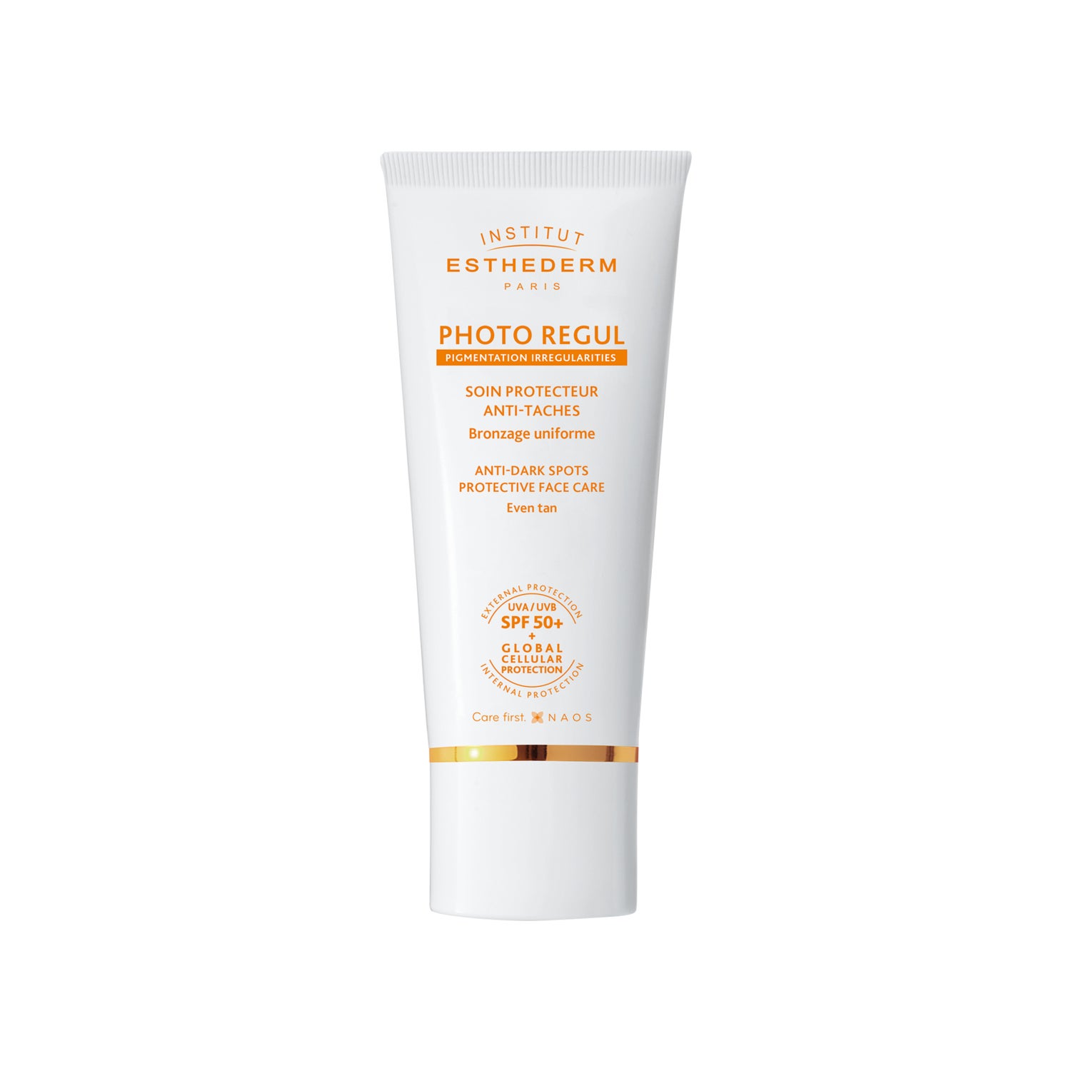 Institut Esthederm Photo Regul Creme Protetora Unificadora Sol Forte 50ml é um protetor solar que contribui para reduzir a aparição de hiperpigmentações cutâneas, ajudando a unificar o tom da pele para um bronzeado mais uniforme.