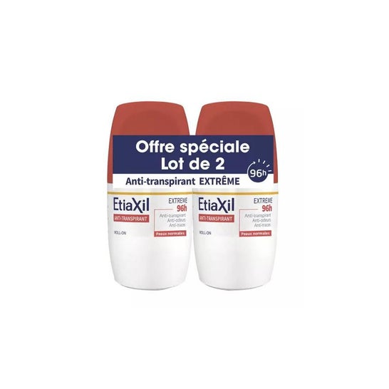 Etiaxil Antitranspirante Extrême 96H 2x50 ml é um produto projetado para oferecer uma proteção eficaz contra a transpiração moderada durante um período de até 96 horas. Esta apresentação inclui um lote de dois roll-ons de 50 ml cada, garantindo um uso prolongado.