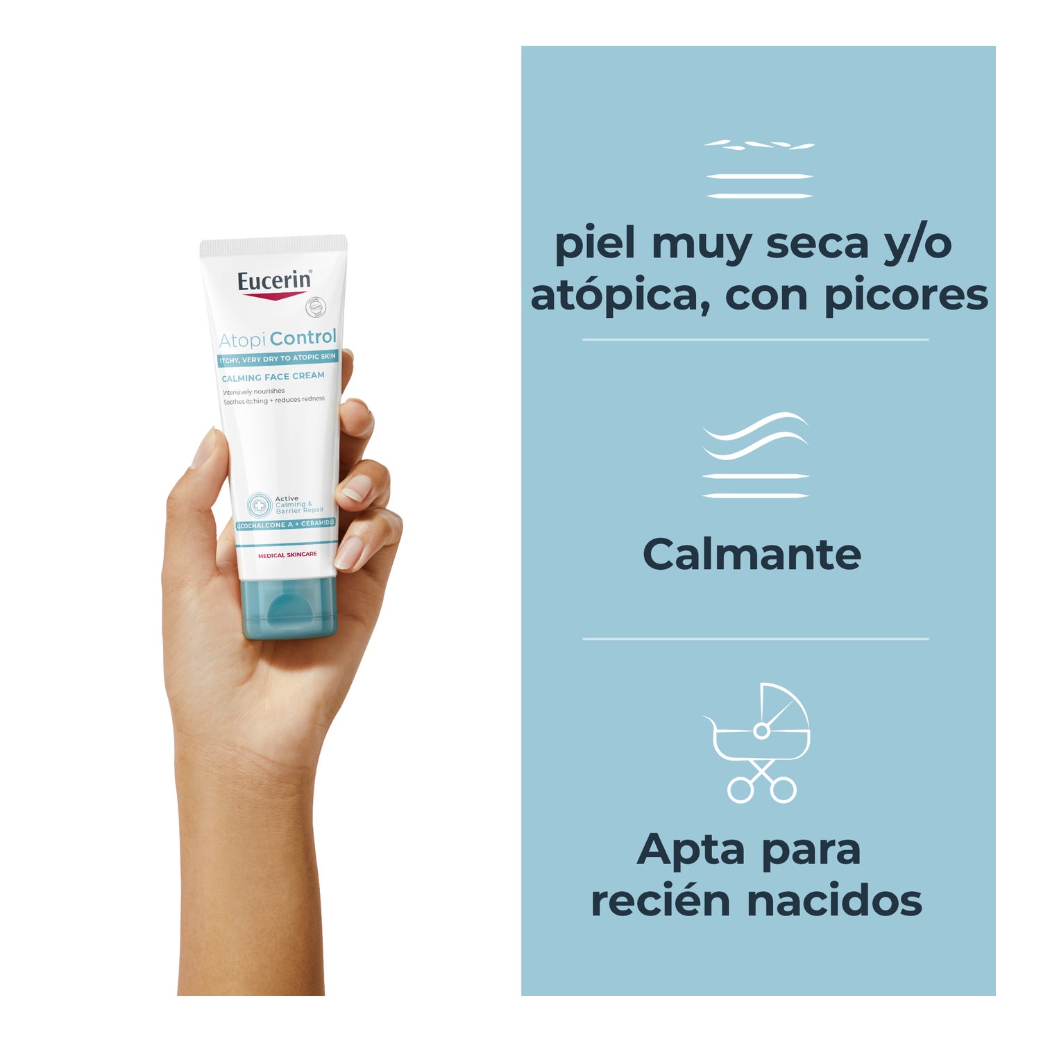 Eucerin AtopiControl Creme Facial Calmante 50ml é uma suave loção que hidrata, acalma e reduz a secura em peles atópicas.