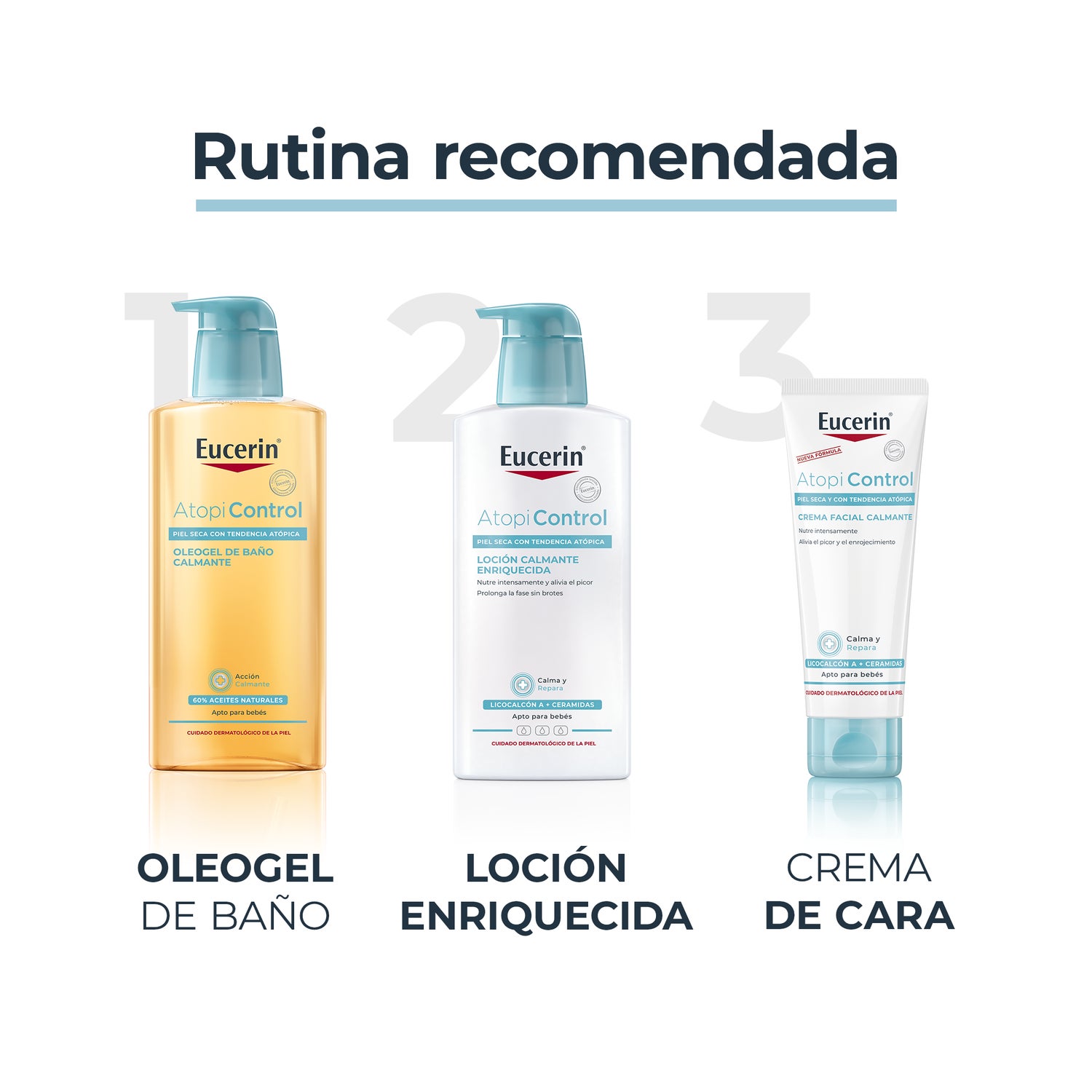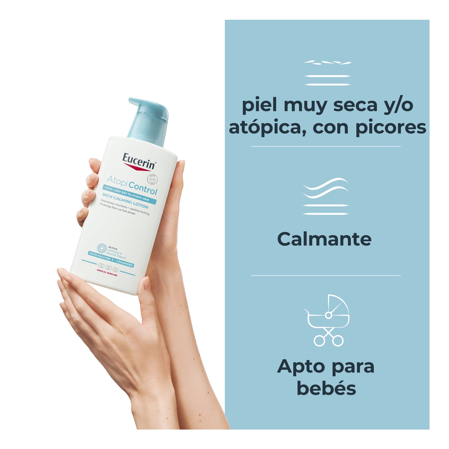 Eucerin AtopiControl Loção Calmante Enriquecida 400ml inclui entre seus ingredientes licocalcón A, ceramidas e óleos ômega, que hidratam e restauram em profundidade as peles atópicas, ajudando a recuperar os lipídios que perdem.