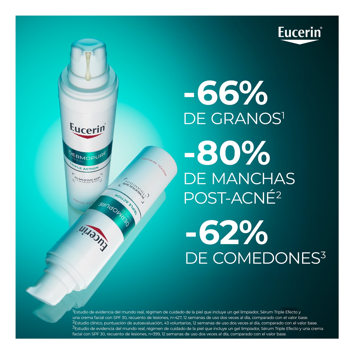 Eucerin DermoPure Clinical Serum Triple Action 40ml é um serum que ajuda a reduzir e prevenir as imperfeições e manchas provocadas pela acne, com efeito anti-brilho.