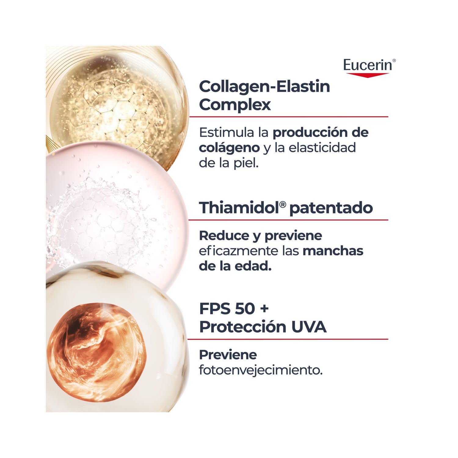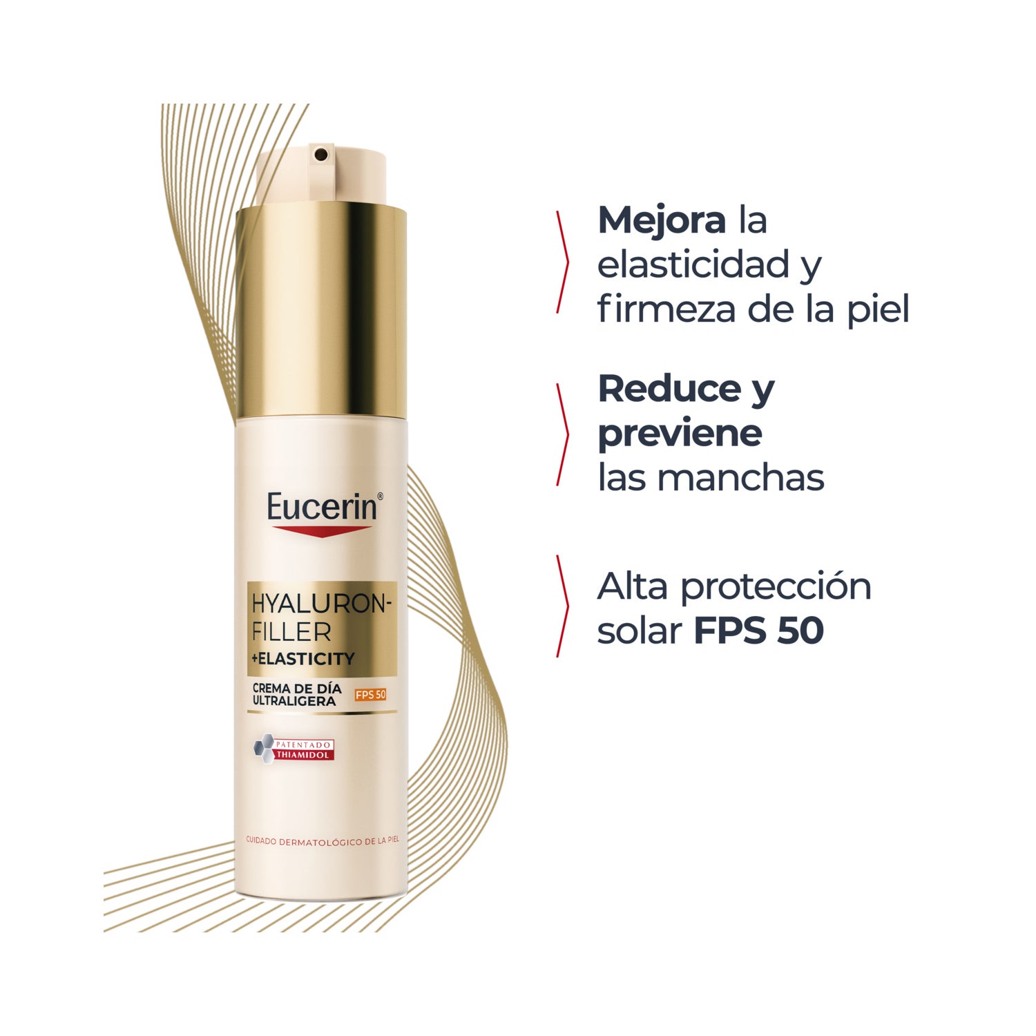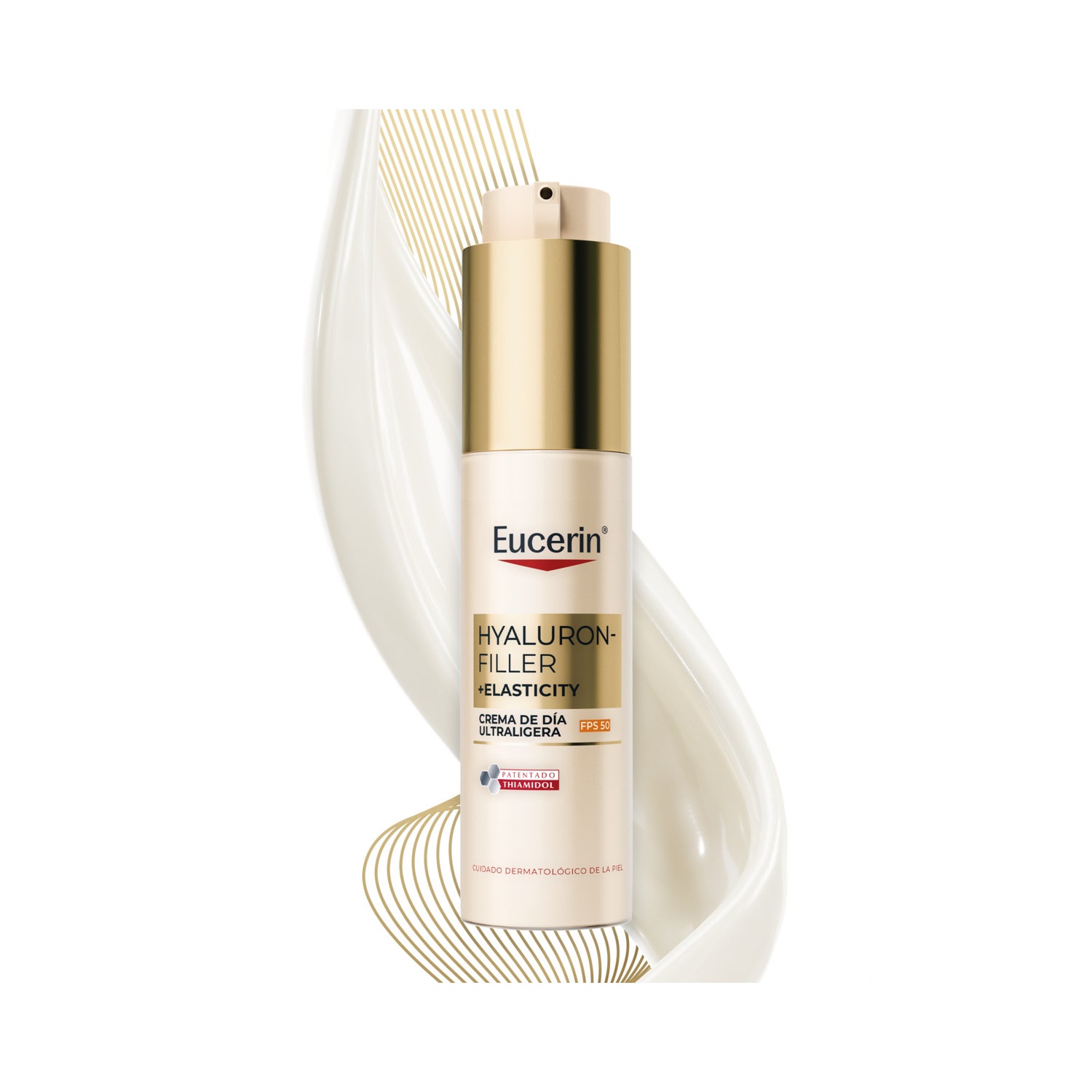 Creme de dia ultraleve com SPF 50 e Complexo de Colágeno e Elastina e Thiamidol®. Fluido antienvelhecimento indicado para peles com sinais prematuros de envelhecimento.