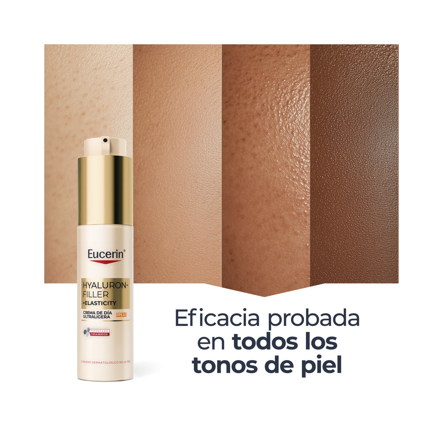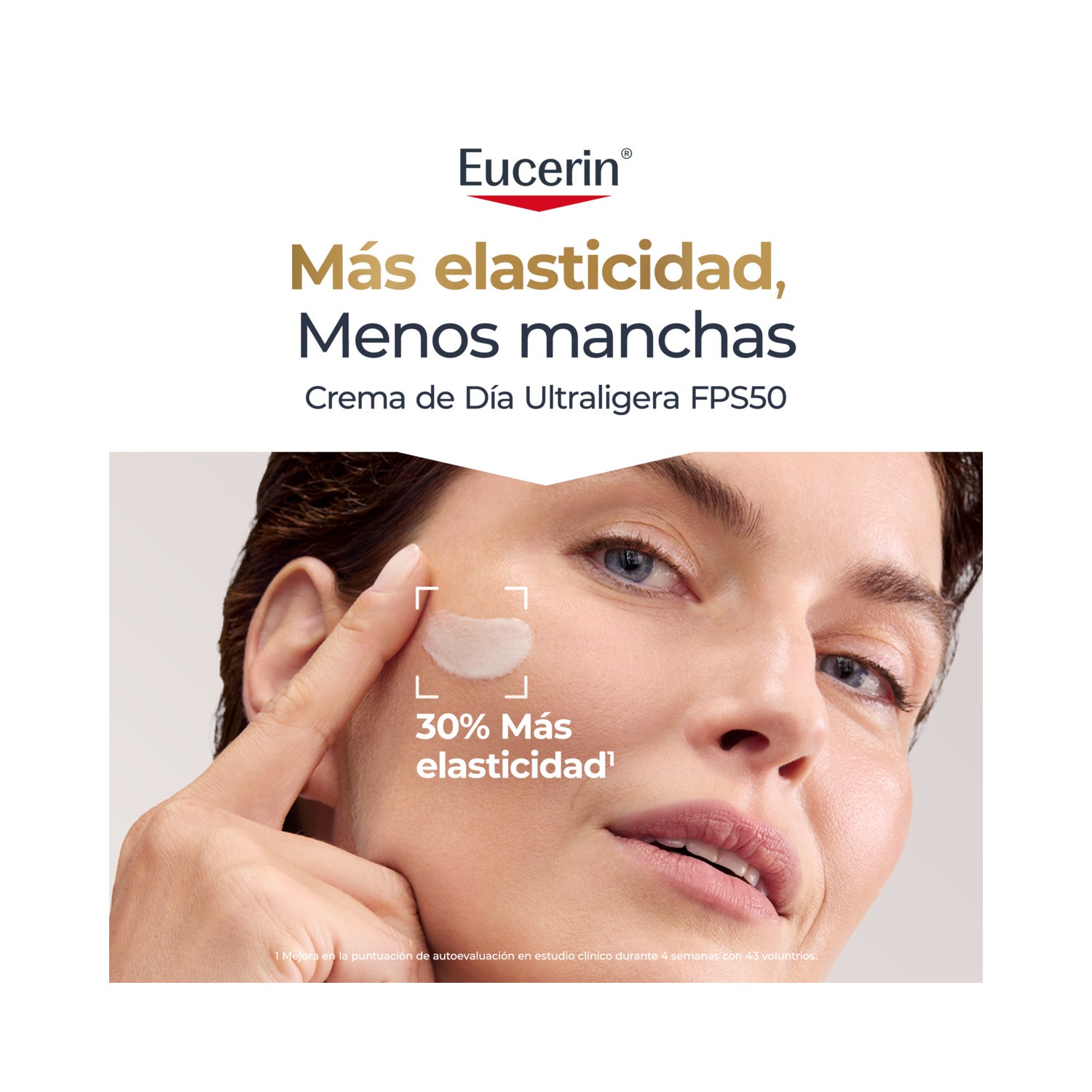 Eucerin Hyaluron‑Filler + Elasticity melhora a elasticidade e firmeza, corrigindo e prevenindo o aparecimento de manchas escuras*.