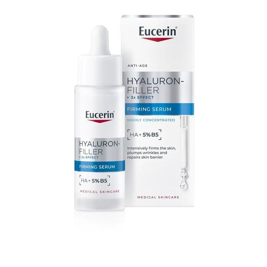 À medida que a pele envelhece, perde firmeza, hidratação e resistência, tornando as linhas de expressão e as rugas mais visíveis. Um sérum reafirmante de alto desempenho deve melhorar a firmeza da pele, favorecer a regeneração e fortalecer a barreira cutânea. Eucerin Anti-Age Hyaluron-Filler Sérum Reafirmante combina 5% de provitamina B5 e microÁcido Hialurônico para proporcionar uma hidratação duradoura, preencher visivelmente as rugas e fortalecer as defesas naturais da pele.