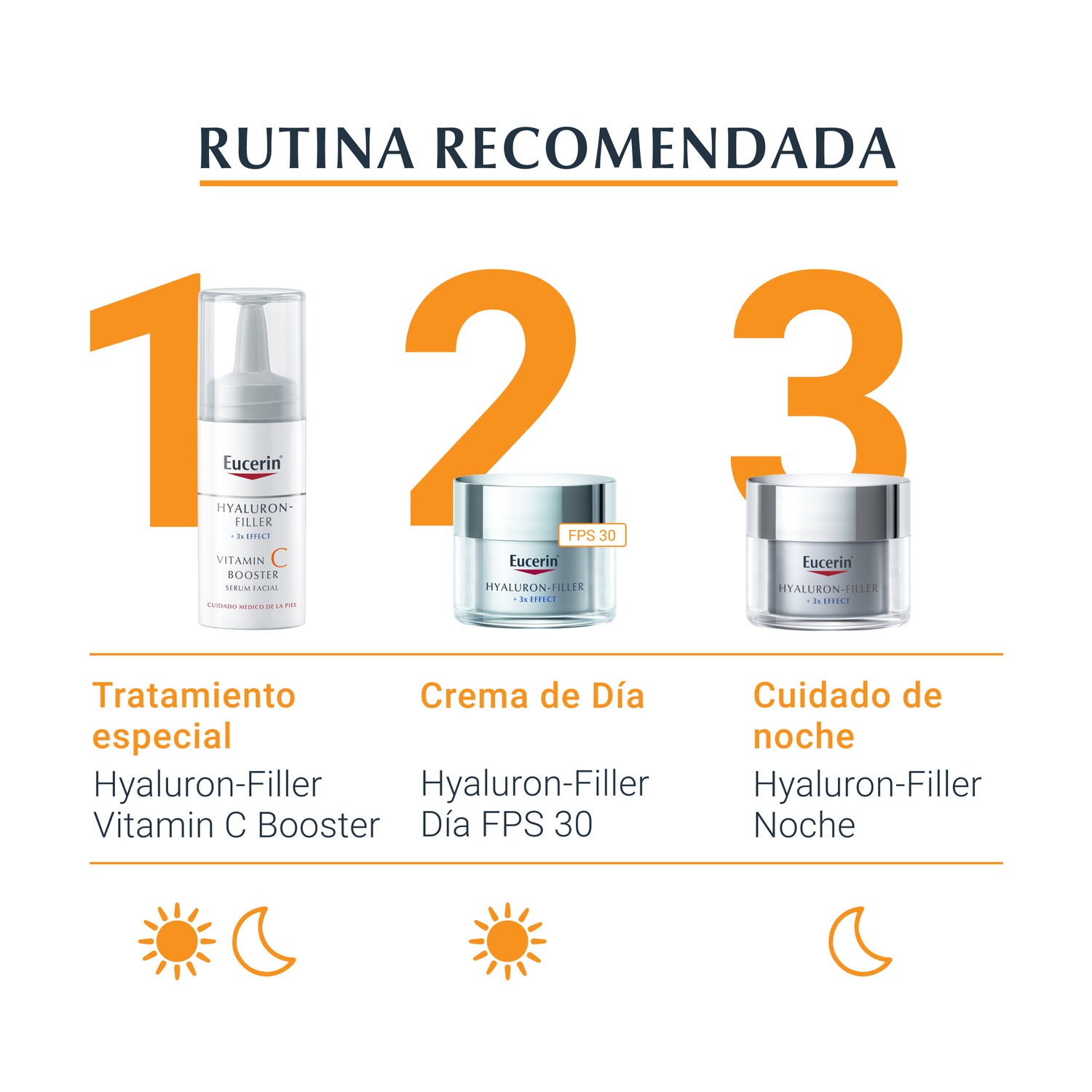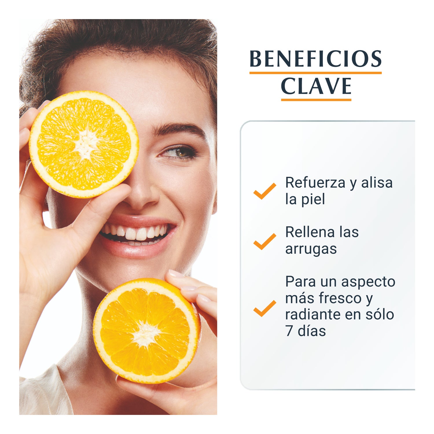 Eucerin® Hyaluron Filler Vitamin C Booster 3x8ml é um sérum anti-envelhecimento de rápida absorção que ajuda a proteger a pele enquanto preenche as rídulas.