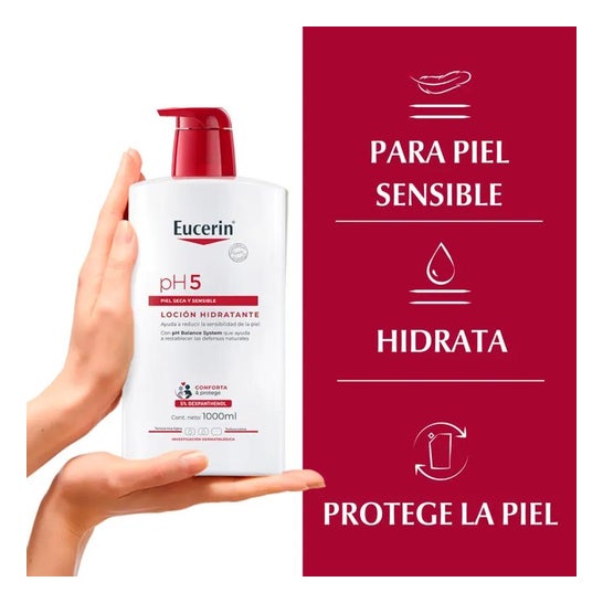 Eucerin Soothing & Protective Lotion pH5 1000ml é uma loção hidratante especialmente formulada para peles sensíveis que ajuda a acalmar e a hidratar a pele, restaurando a barreira cutânea.