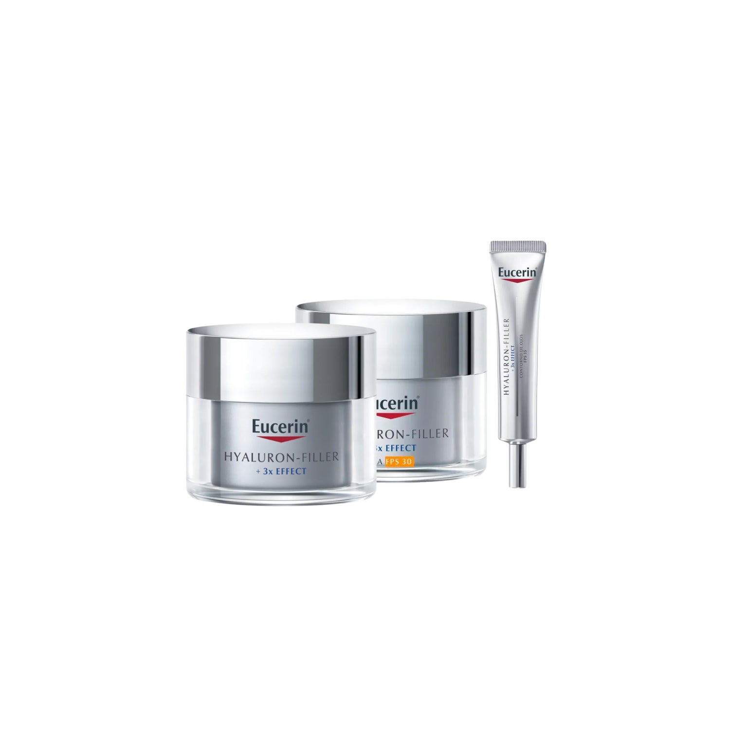 Eucerin Hyaluron-Filler Dia 3X Effect SPF30 50ml é um creme facial antienvelhecimento para todos os tipos de pele que favorece uma pele mais luminosa, hidratada e firme.