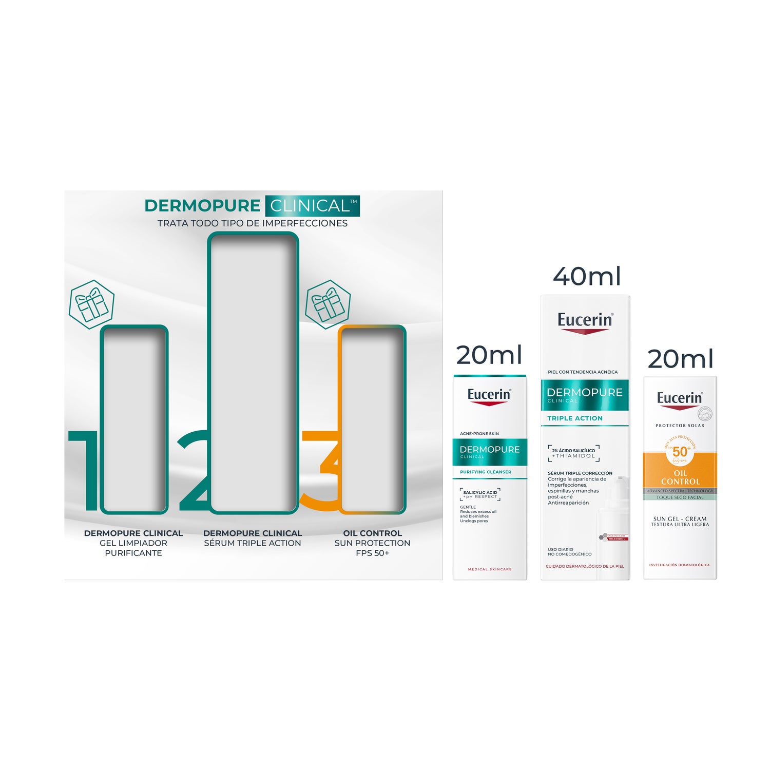 Este pack combina três produtos essenciais para uma rotina dermatológica completa contra as imperfeições: