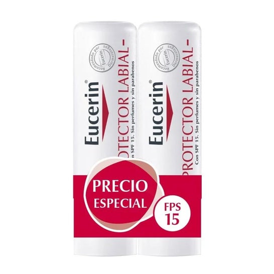 Eucerin Duplo Protetor Labial SPF20 2x4.8g é um produto com pH 5 que foi concebido para proteger e hidratar os lábios sensíveis com secura e aspereza . Além disso, protege a pele dos agentes externos como o frio, o calor, a poluição e os factores ambientais que não danificam a pele sensível dos lábios.