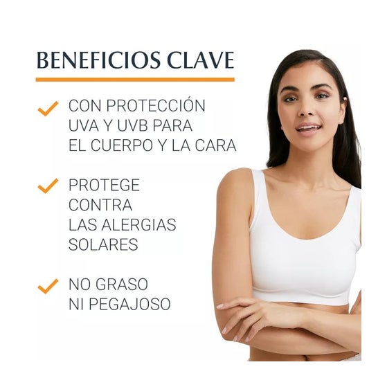 Eucerin® Sun Allergy Protection SPF50+ previne ao máximo o risco de reações cutâneas ao sol. Possui as seguintes características: