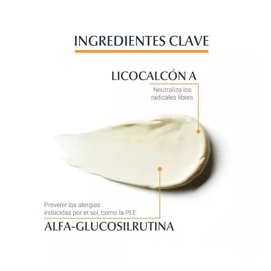 Na sua fórmula encontramos Alfa-Glucosil-Rutin, proteína anti-oxidante, que, combinada com Licochalcone, reforça o sistema de proteção da pele contra os radicais livres, um dos principais desencadeadores das alergias solares. A sua textura não oleosa é indicada para peles reativas e alérgicas.