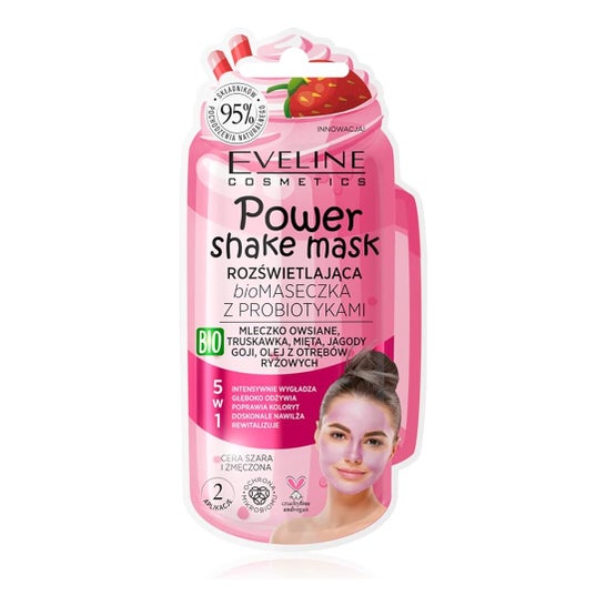 Eveline Cosmetics Power Shake Mask Iluminadora 10ml é uma máscara iluminadora para peles apagadas. Elaborada à base de leite de aveia, extratos de morango e goji, extrato de hortelã e óleo de farelo de arroz, ativos que nutrem e acalmam o vermelhidão da pele. Além disso, contém probióticos que combatem a ação dos fatores externos. Dermatologicamente Comprovado. Livre de crueldade animal. Apto para veganos.