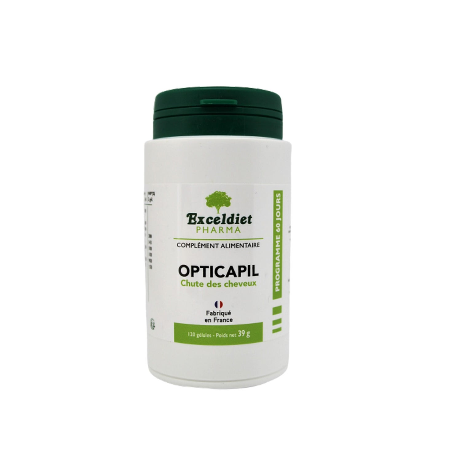 Graças aos seus 9 componentes ativos, Opticapil é um complemento alimentar indispensável para a saúde do couro cabeludo. Contribui para frear a queda de cabelo e favorece seu crescimento. Para comprovar sua eficácia, realize o teste da escova antes e depois de usar Opticapil. Formato XL de 120 cápsulas, para um tratamento de 60 dias.