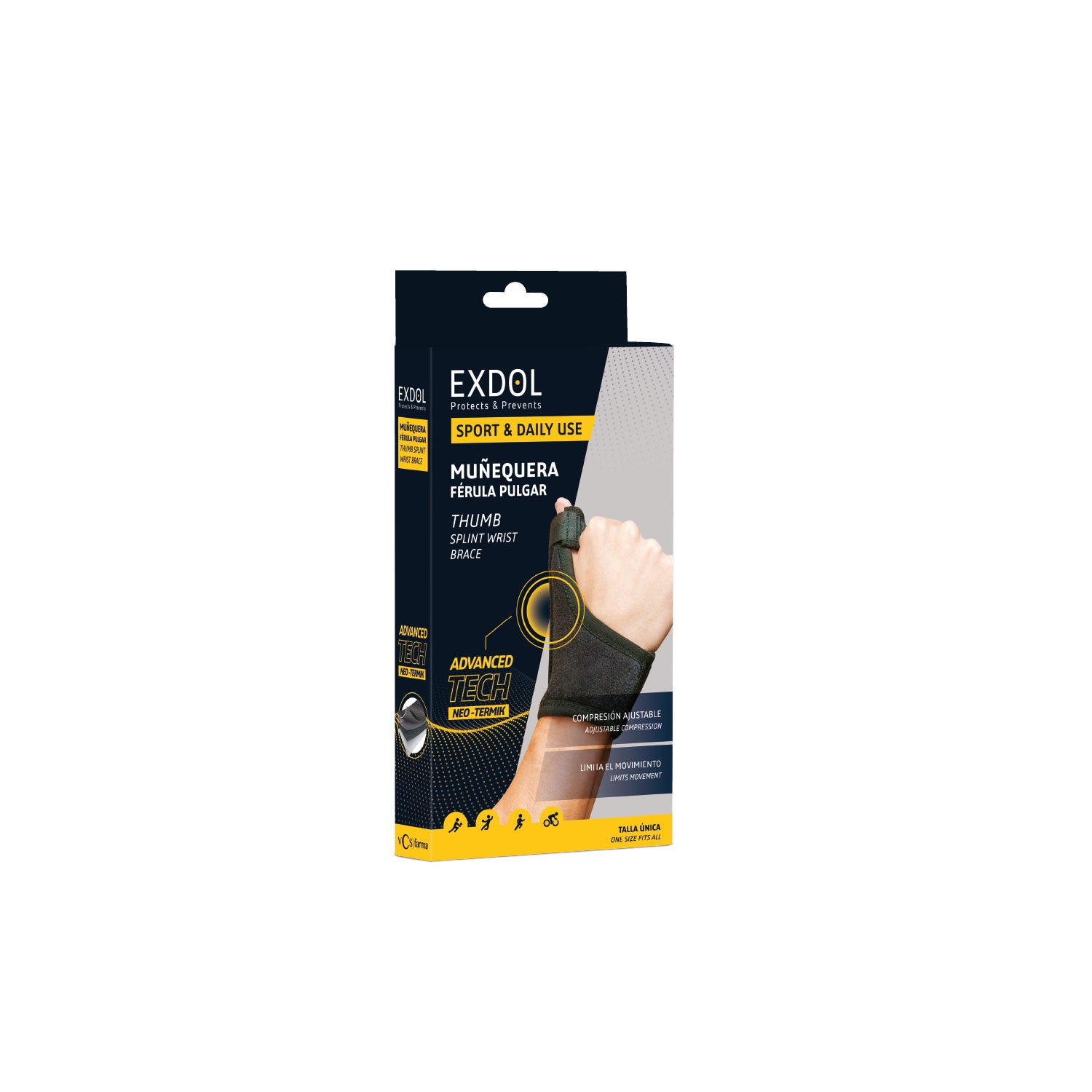 Exdol Wristband Splint Thumb Thumb neoprene 1 pc é ideal para uso em homens e mulheres, graças ao seu tamanho universal único, adaptável a ambas as mãos. Esta pulseira é ideal para usar para imobilizar o polegar, graças à incorporação da tala removível, que ajuda a imobilizar a área para evitar qualquer lesão articular.