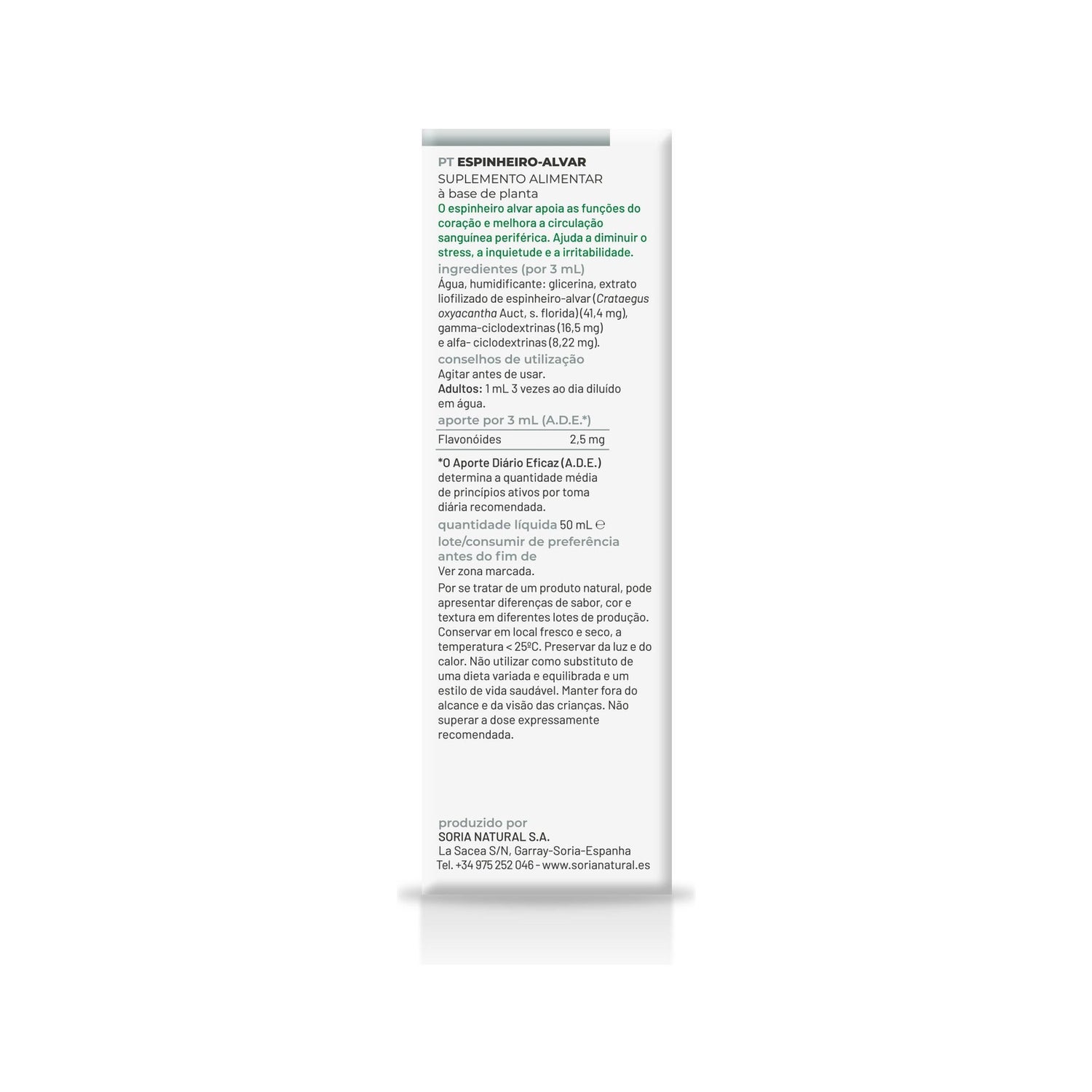 Soria Natural Espino Blanco Extract 50ml é um suplemento alimentar de extracto de Espino Blanco XXI indicado para o tratamento de afecções do sistema cardiovascular.