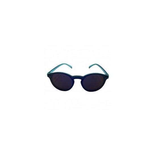 Óculos de sol de armação oval em acetato preto e azul com lentes de policarbonato polarizadas. Ajudam a proteger os olhos dos mais pequenos da família contra os efeitos nocivos dos raios solares. As lentes têm um tratamento anti-riscos e filtros UV400. Adequado para crianças.