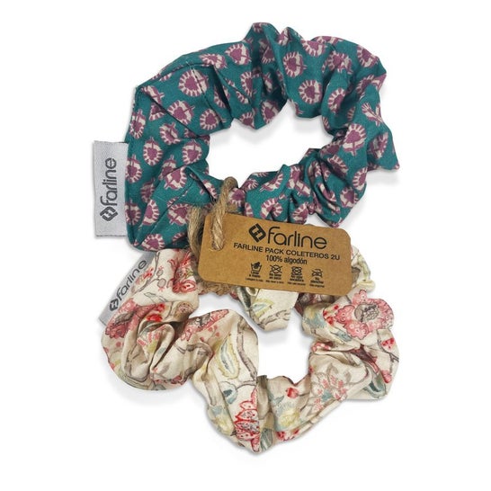 Farline Pack Elásticos Cabelo 2 Unidades é um conjunto que contém dois scrunchies elaborados em 100% algodão. Esses acessórios apresentam: