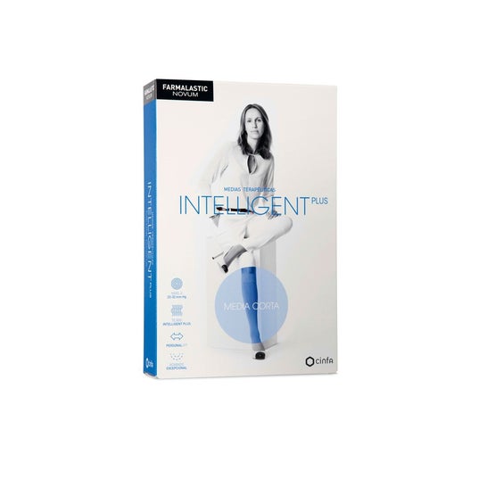 Farmalastic Intelligent+ Meia Longa Normal Caviar T5 1 Par são meias terapêuticas de compressão graduada de nível II (23-32 mm Hg), projetadas para melhorar a circulação sanguínea e aliviar os sintomas de insuficiência venosa. São especialmente recomendadas para pessoas com problemas circulatórios nas pernas.