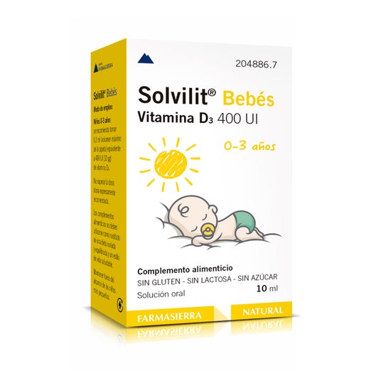 Solvilit® Babies Vitamina D3 400 UI 10ml é um suplemento alimentar do laboratório Farmasierra que apoia o bom funcionamento do sistema imunitário e o crescimento e desenvolvimento normal dos bebés.