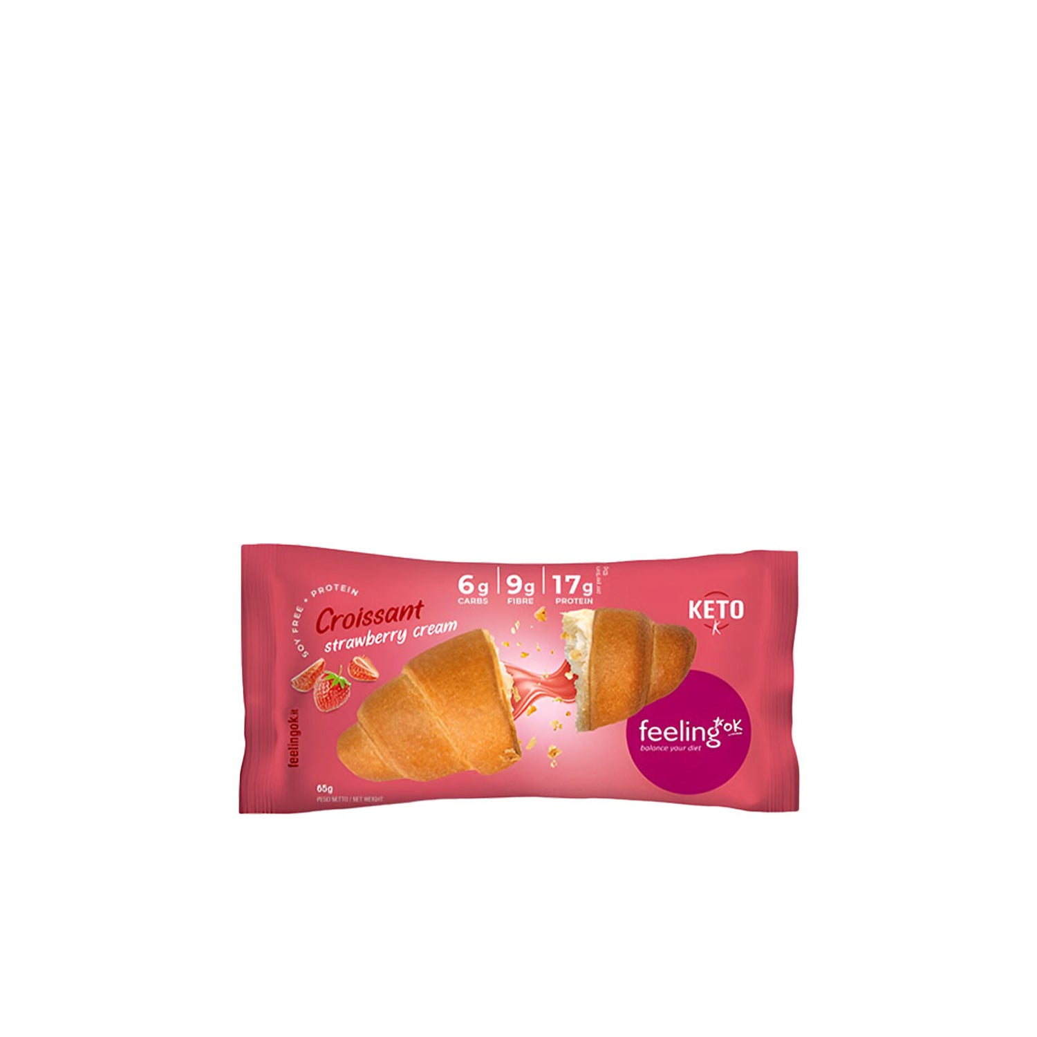 Feeling Ok Croissant Proteína Recheado com Creme de Morango 65g é um exquisito croissant projetado para quem busca uma opção nutritiva e deliciosa. Este produto "KETO friendly" da marca artesanal italiana Feeling Ok é ideal para: