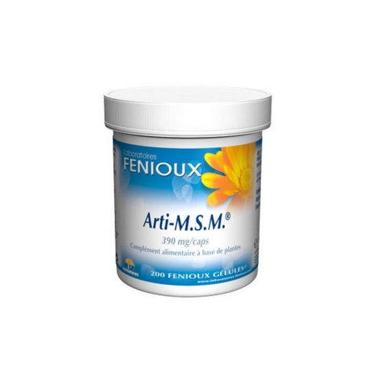 Fenioux Arti MSM 390mg 200caps 200caps suplemento alimentar à base de rizoma de curcuma e metil sulfonil metano (msm). os poderes anti-inflamatórios do curcuma são indicados para preservar as articulações, aliviando a dor e mantendo os ossos em perfeitas condições. o msm fornece uma fonte de enxofre orgânico biodisponível.