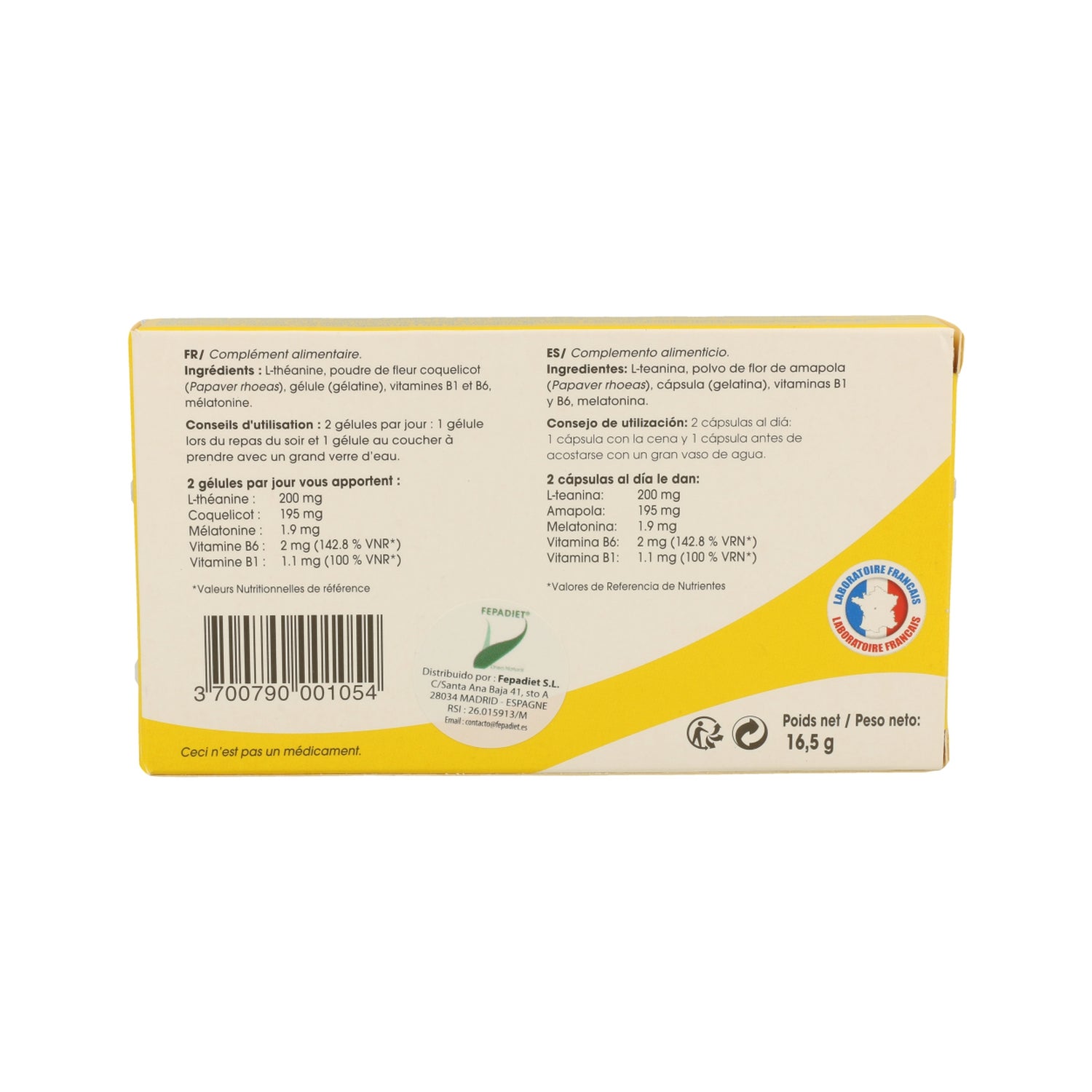 Suplemento alimentar formulado com ervas e micronutrientes. Contém papoila, melatonina, L-teanina e vitaminas B1 e B6. Ajuda a melhorar a duração e a qualidade do sono nocturno. A combinação de ingredientes tem efeitos benéficos sobre o funcionamento normal do sistema nervoso. Adequado para pessoas com distúrbios do ciclo do sono.