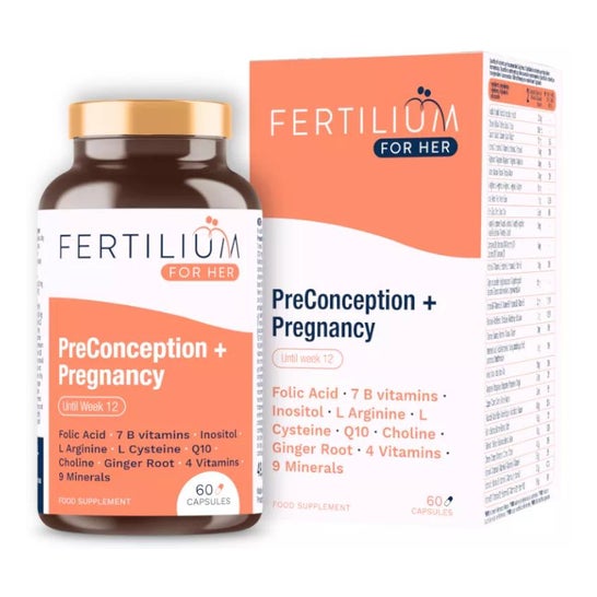 Fertilium com Inositol + Folato + Q10 Pré-concepção e Gravidez 60caps é um complemento alimentar que contribui para reforçar as defesas naturais e melhorar o crescimento dos tecidos maternos durante a gravidez.