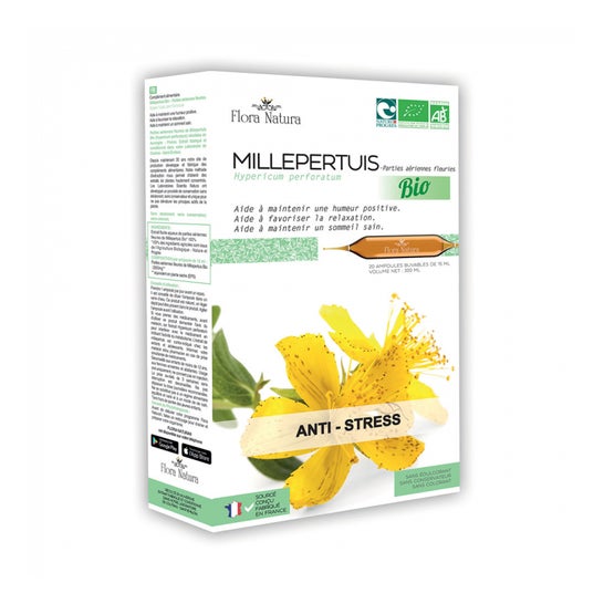 Erva de St. John's em ampolas de agricultura orgânica certificada. As suas propriedades são indicadas para uma boa saúde mental. Eles relaxam a mente, proporcionando calma em momentos de necessidade especial ou stress. Eles contribuem para uma boa higiene do sono, promovendo o relaxamento e combatendo a insônia. Melhoram os momentos de crise pessoal leve e os processos pós-menopausa.
