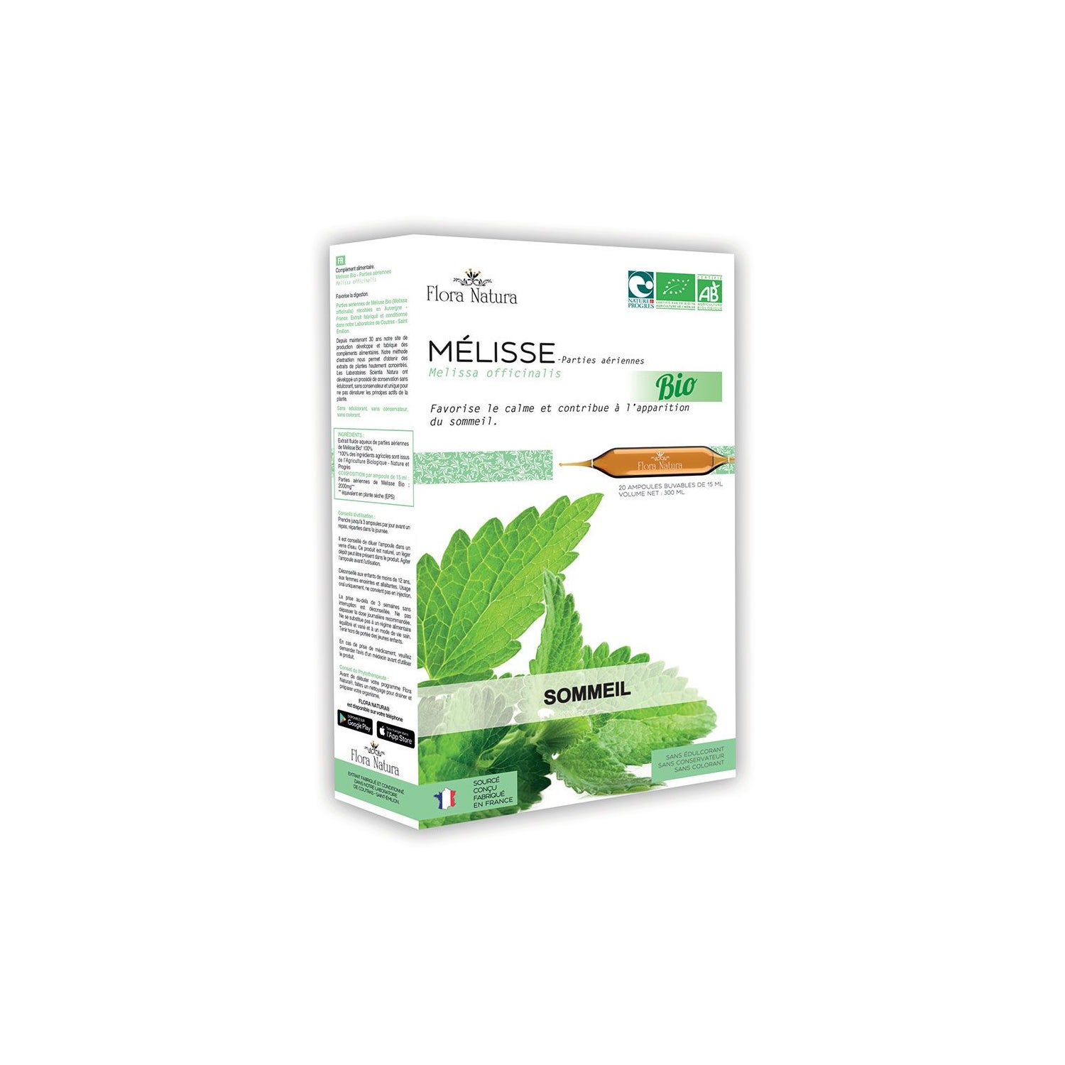 Suplemento alimentar desenvolvido a partir de extracto de bálsamo de limão orgânico. Ajuda as pessoas a adormecer, promove um bom sono e um estado de calma. Contribui para a função psicológica normal, participa na formação dos glóbulos vermelhos e fornece nutrientes ao sistema nervoso. Não causa dependência ou sonolência. Enriquecido com magnésio, o que ajuda a reduzir a fadiga corporal. Os ingredientes são de origem orgânica certificada. Disponível em frascos de ampolas. Feito em França.