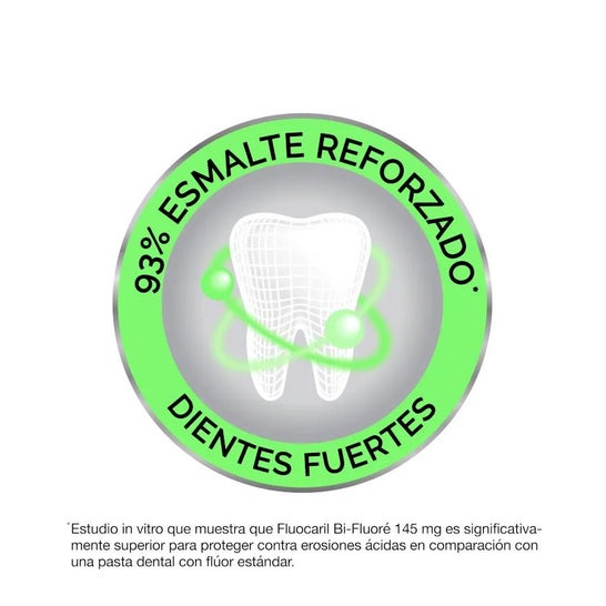 Também ajuda a fortalecer o esmalte dentário graças à sua concentração de flúor. Também ajuda a reduzir a aparência do tártaro e tem um sabor a menta.