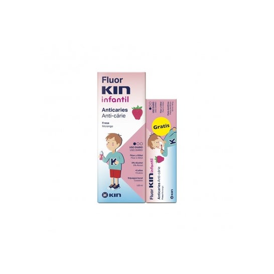 - Pasta de dentes Fluor Kin 50ml: Uma dose de flúor e xilitol adaptada à sua idade, favorecendo a primeira escovagem das crianças entre os 2 e os 6 anos. Para além de proteger contra as cáries e encorajar o desenvolvimento dos dentes de bebé, esta pasta de dentes remineraliza e cuida do seu esmalte. Por último, mas não menos importante, o sabor a morango será muito agradável para os seus filhos.