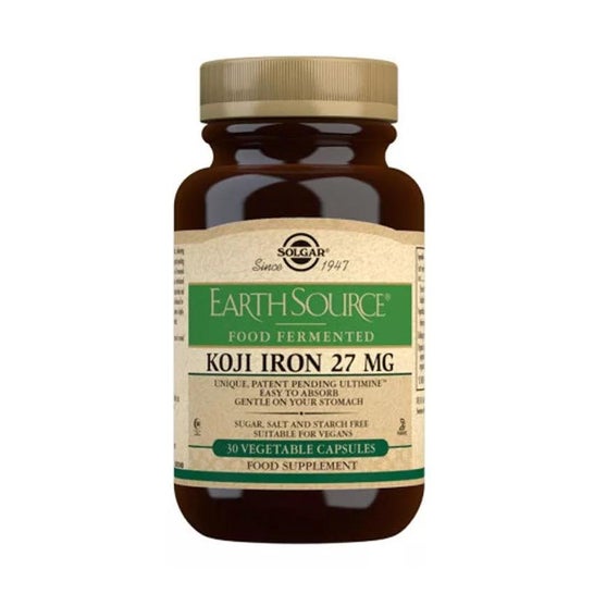Solgar Earth Source Koji Iron 27mg 30vcaps é um suplemento alimentar em cápsulas de extrato fermentado de ferro Koji, uma forma de ferro que é bem tolerada por estômagos sensíveis.