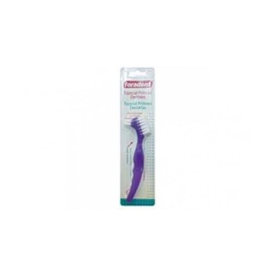 Escova clínica especialmente desenvolvida para usar em próteses dentárias, que é projetada com uma maior concentração de filamentos para ajudar a limpar mais superfície com menos esforço.