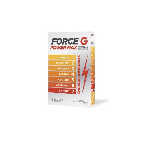 Force G Power Max 10ml Amp10 + energia imediata é um complemento projetado para fornecer um impulso rápido e eficaz contra o cansaço físico e mental. Sua fórmula avançada, criada pela NUTRI SANTÉ, é direcionada a adultos que buscam recuperar vitalidade e melhorar seu desempenho diário, especialmente em momentos de fadiga ou alta exigência.
