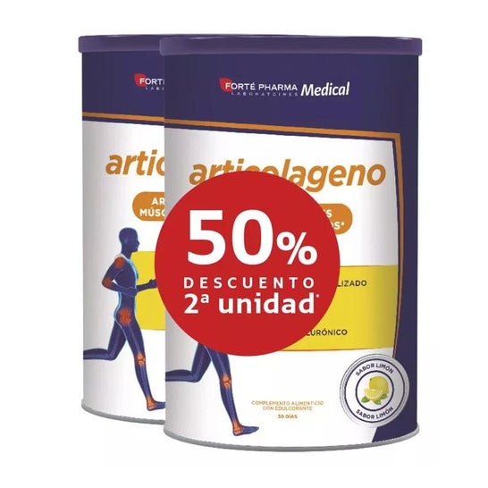 Forte Pharma Articolágeno Limão Duplo 2x350g é um complemento alimentar com sabor a limão formulado à base de magnésio e vitamina C. Pacote com 2 frascos de 350g.