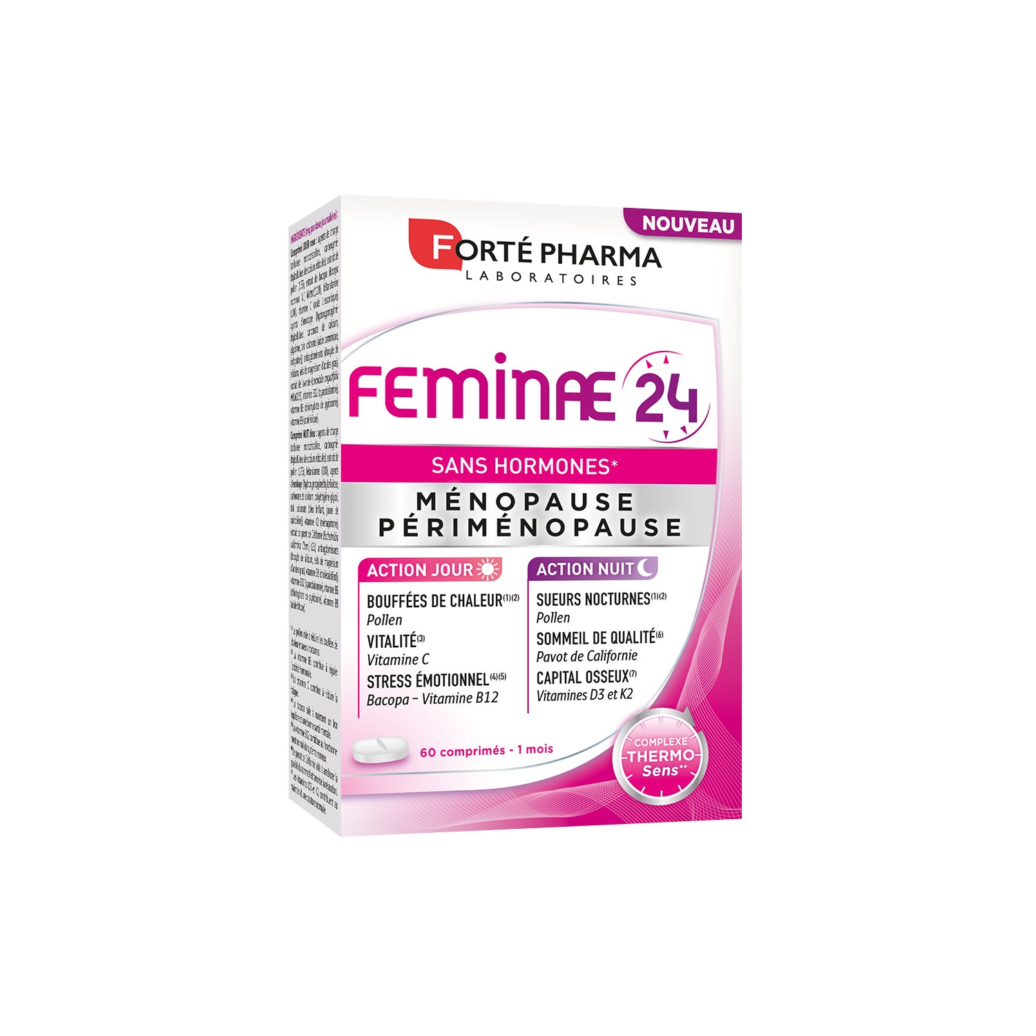 Forté Pharma Feminae 24 60comp é um suplemento alimentar em comprimidos especialmente concebido para ajudar as mulheres durante a menopausa.