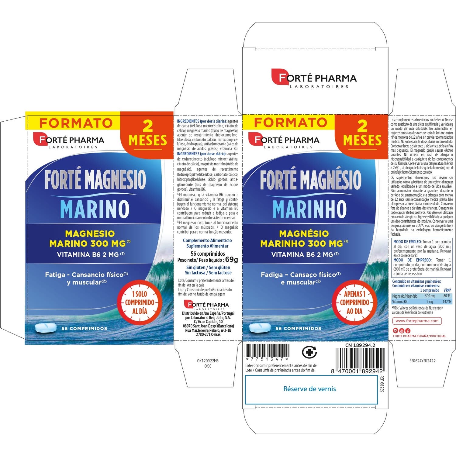 Forté Pharma FortéMag Marine Magnesium 300 Mg 56comp é um suplemento alimentar que fornece apoio para combater os estados de fadiga e cansaço.