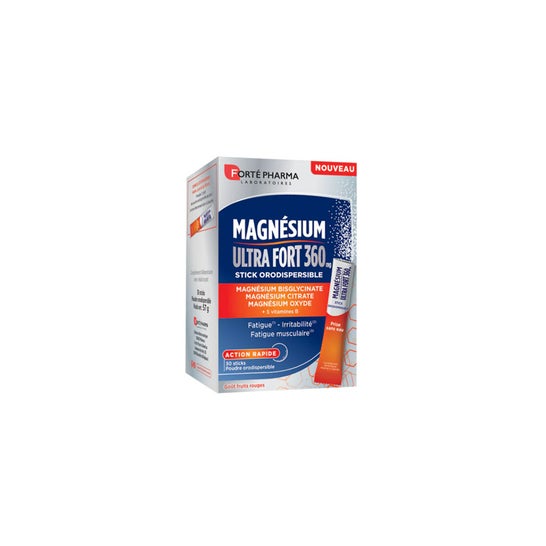 Forte Pharma Magnésio 360Mg Ultra Forte em formato de 30 sticks é um complemento essencial para o correto funcionamento do organismo. Este produto foi projetado para contribuir para: