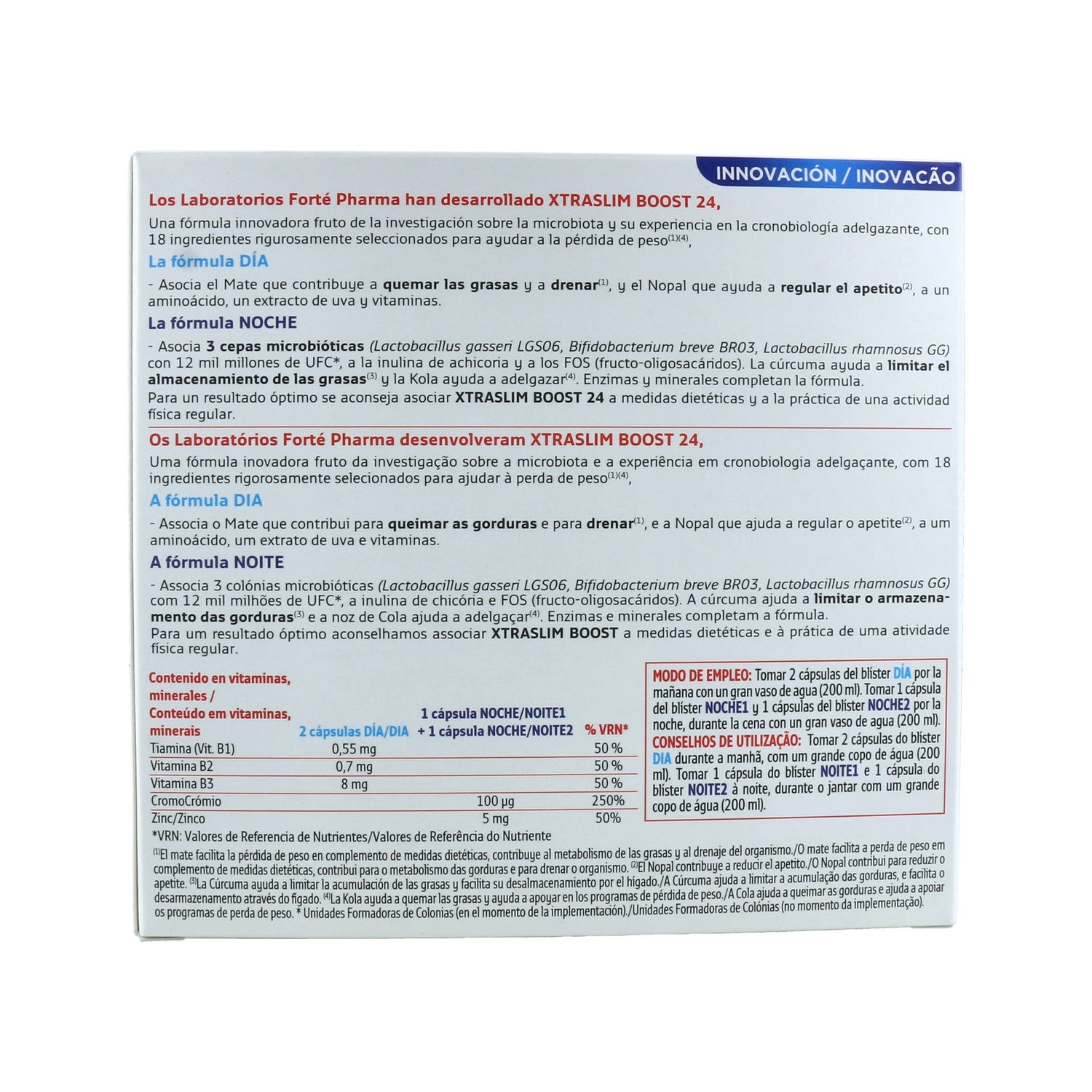 Forte Pharma XtraSlim Boost 24h 120caps é um suplemento alimentar que actua como adjuvante nos processos de emagrecimento, pois ajuda a reduzir a absorção de gorduras.