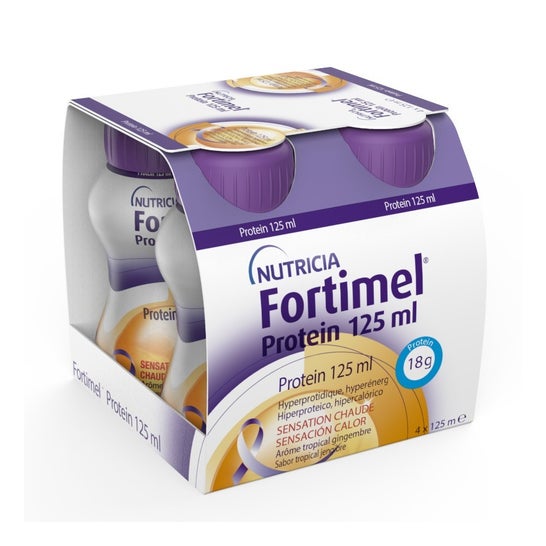 Fortimel Protein Tropical Flavour Ginger 125ml x 4 unidades é um suplemento nutricional hiperproteico e hipercalórico especialmente adaptado para pacientes oncológicos que ajuda a satisfazer as necessidades nutricionais associadas e a controlar a perda de peso.